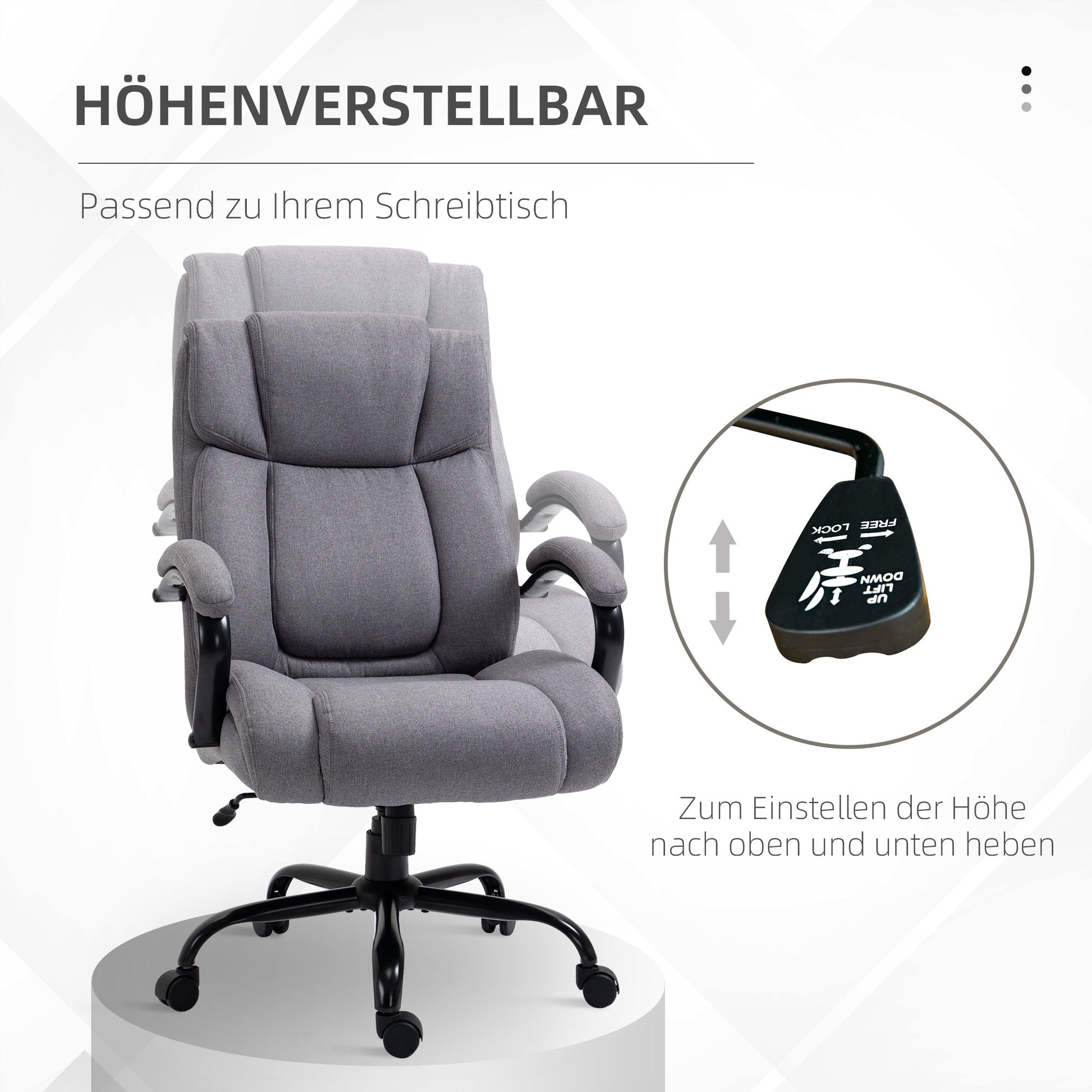 Kancelárske kreslo Vinsetto, ergonomické riaditeľské kreslo, čalúnené kreslo s opierkami, výškovo nastaviteľné otočné kreslo s funkciou náklonu, vzhľad plátna, nosnosť až 220 kg, svetlo šedé