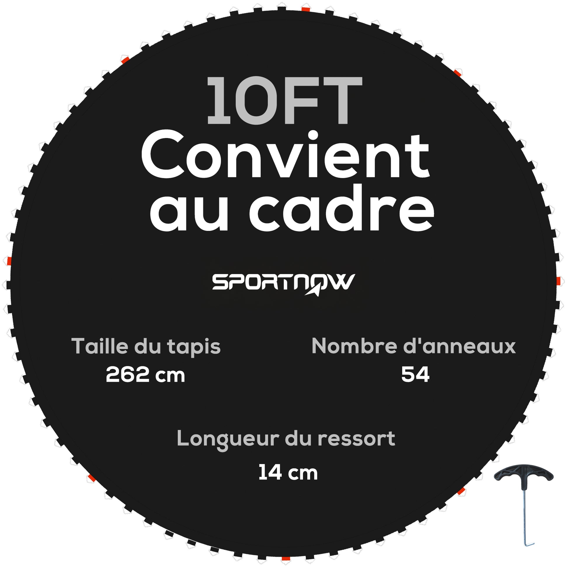 - - ŠPECIFIKÁCIE: Rozmery náhradnej trampolínovej podložky: Ø 262 cm. Nástroj na inštaláciu s pružinami je súčasťou balenia pre vašu pohodlnosť