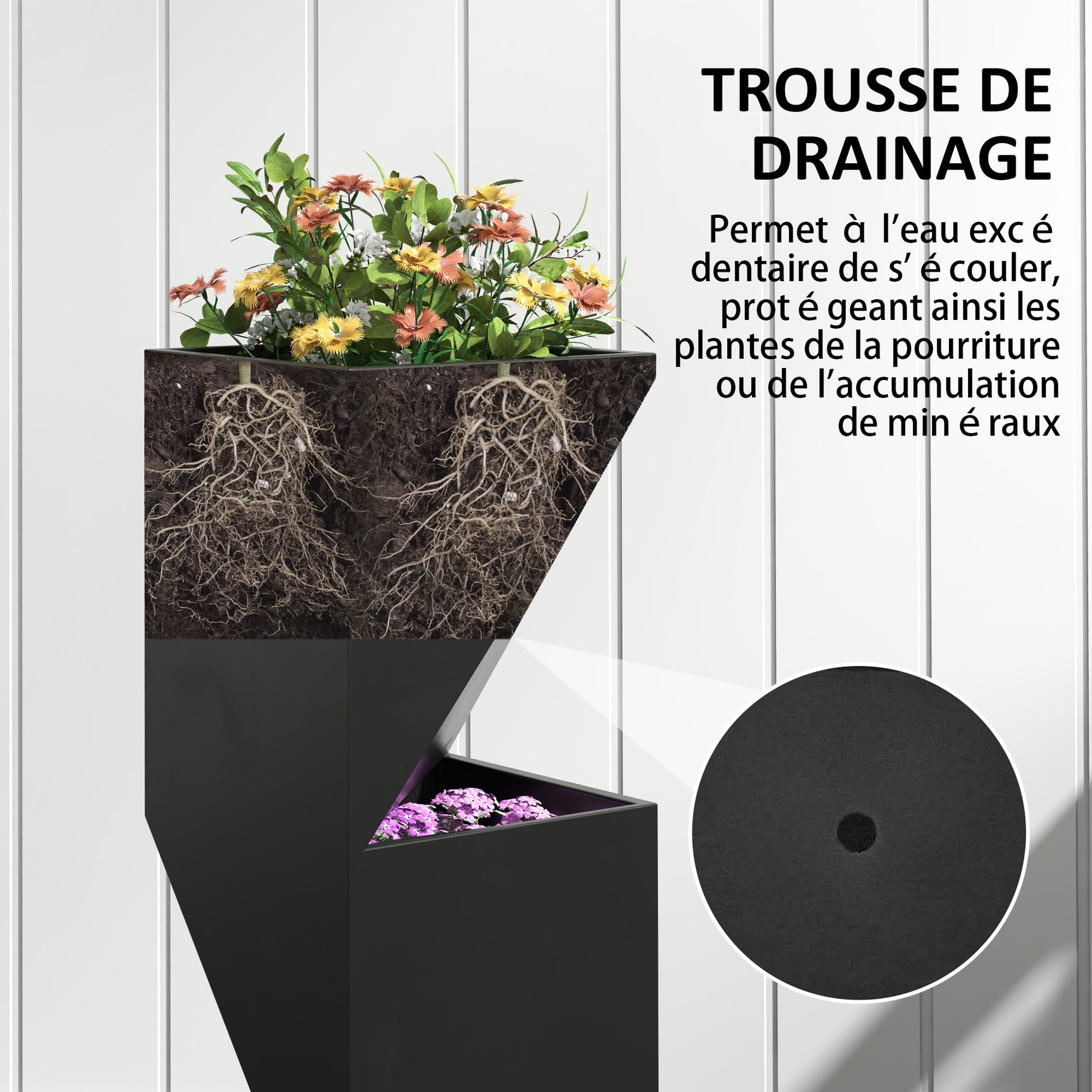 Outsunny Kvetináč, interiérový kvetináč s 3 zónami na sadenie, s drenážnymi otvorom, na vnútorné aj vonkajšie použitie, kov, 30 x 30 x 100 cm, čierny