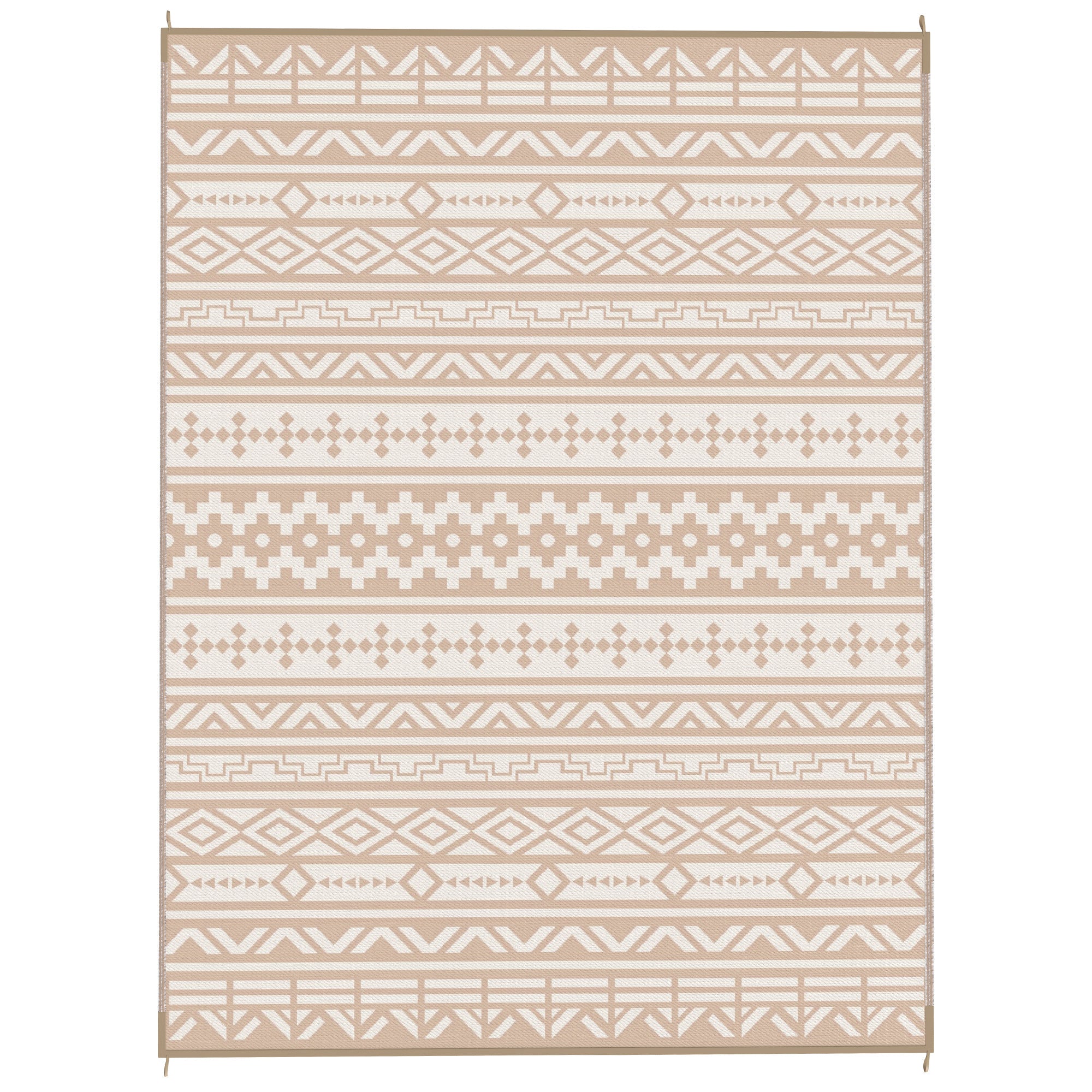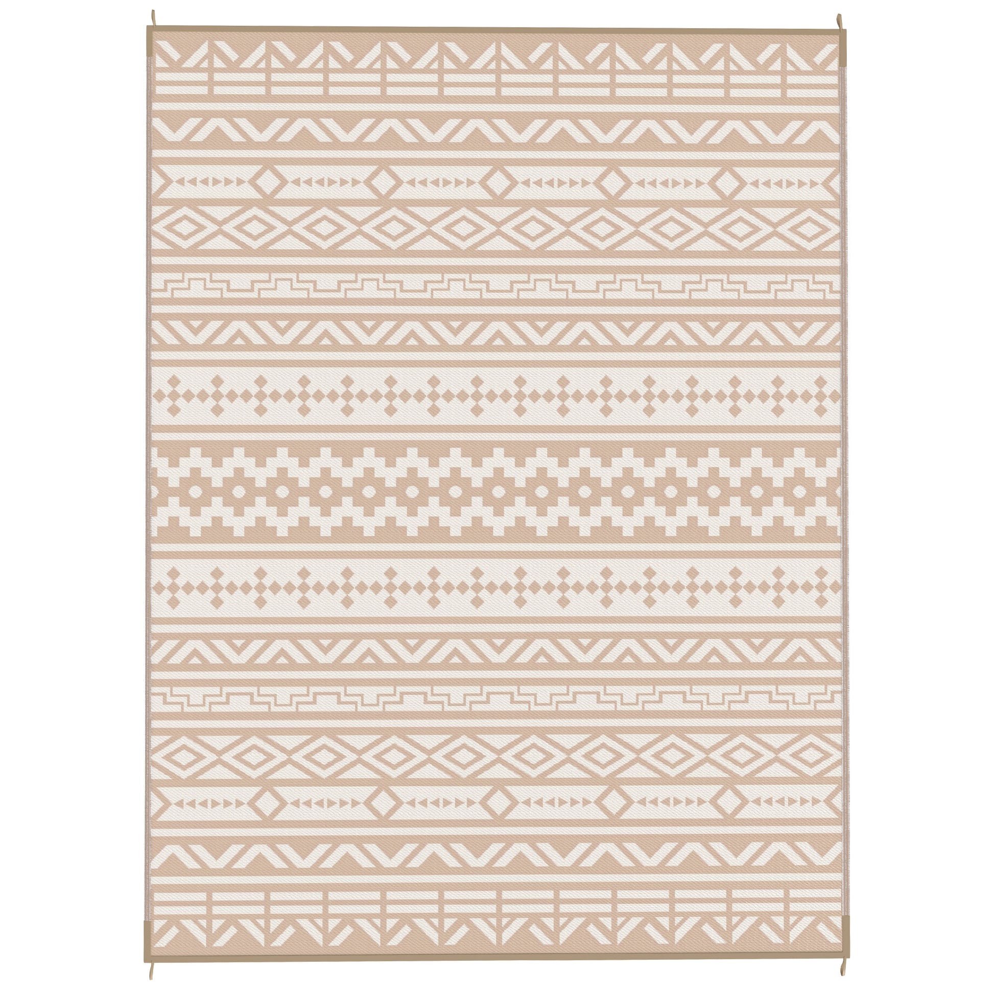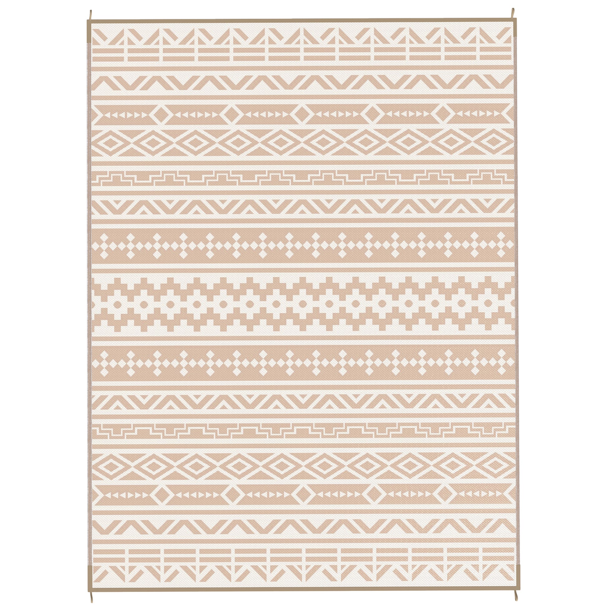 Outsunny Oboustranný Záhradný Koberec 3,7 x 2,7 m, odolná polypropylénová podložka s geometrickým motívom, súčasťou je taška na prenášanie, koberec na terasu, khaki a svetlo béžová