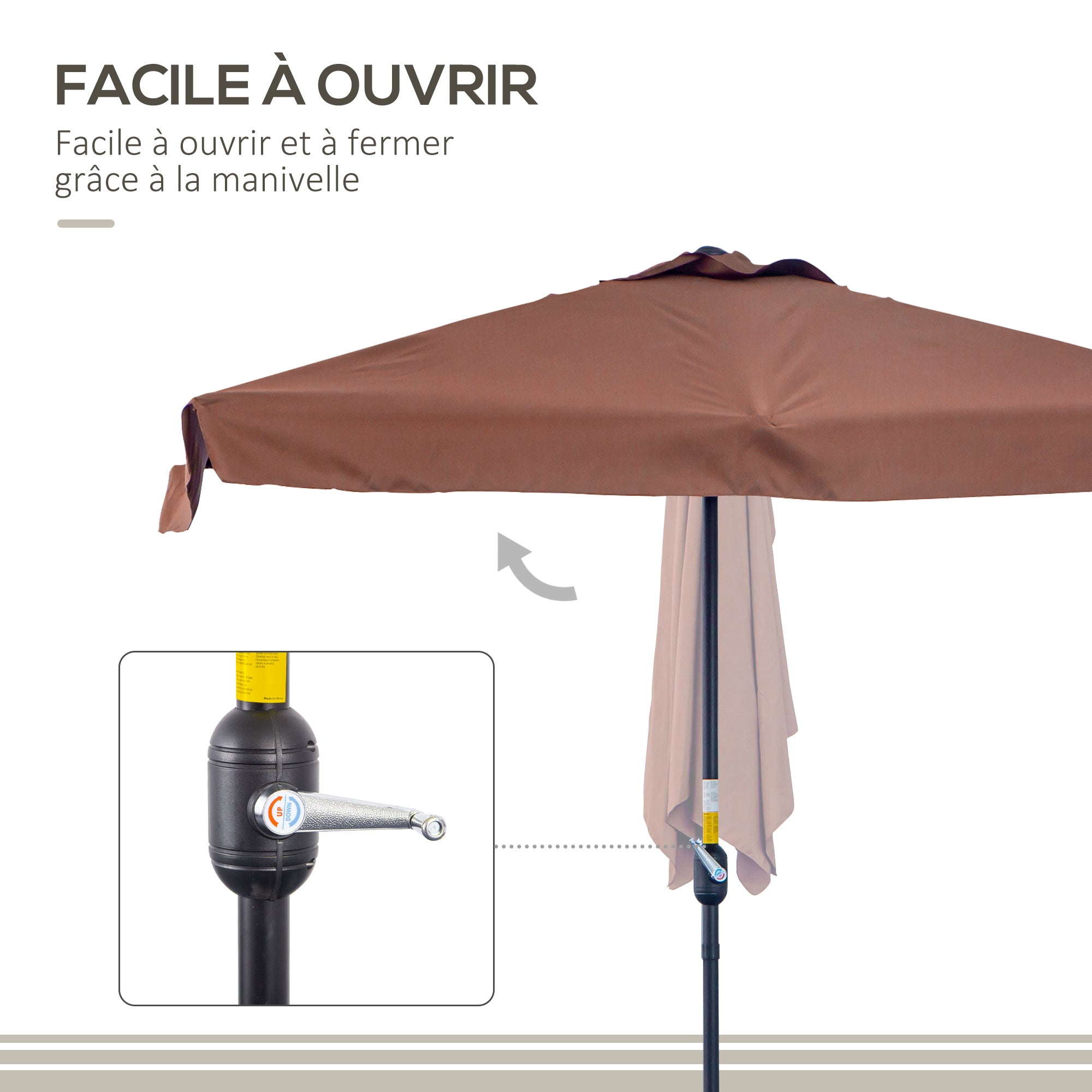 Outsunny Polovičný Umbrella - Balkónový Parasol 5 Kovových Stojanov 2,3 x 1,3 x 2,49 m Vysokohustotný Polyester Čokoládový