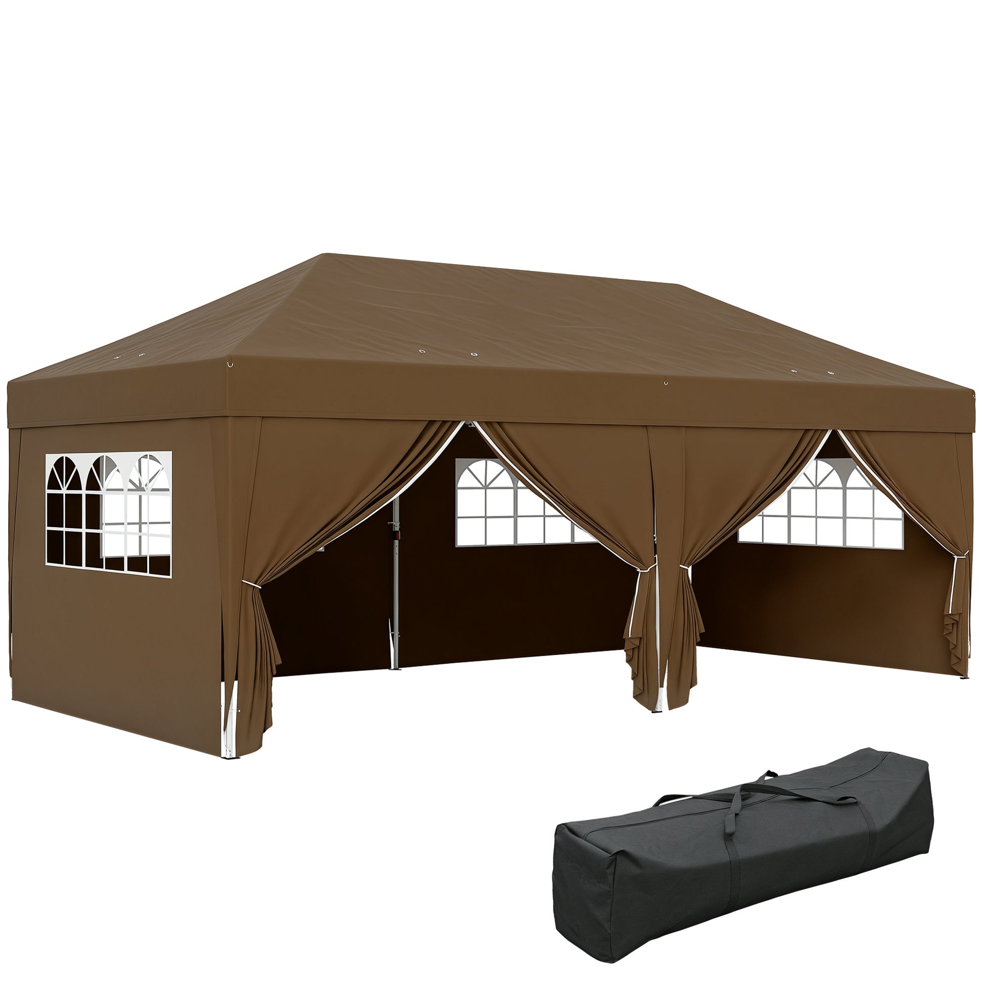 Outsunny Skladací Altánok 6x3m Hnedý Skladací Kryt s 6 Odnímateľnými Bočnými Stenami Vodotesný, Antivandr UV s Taškou na Prenos pre Záhradné Párty
