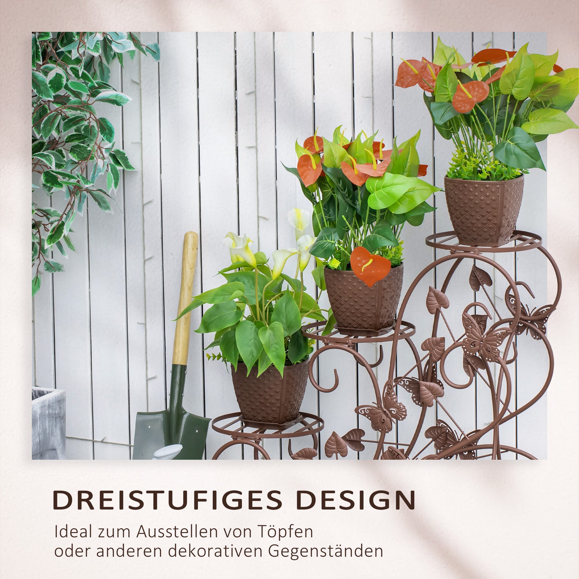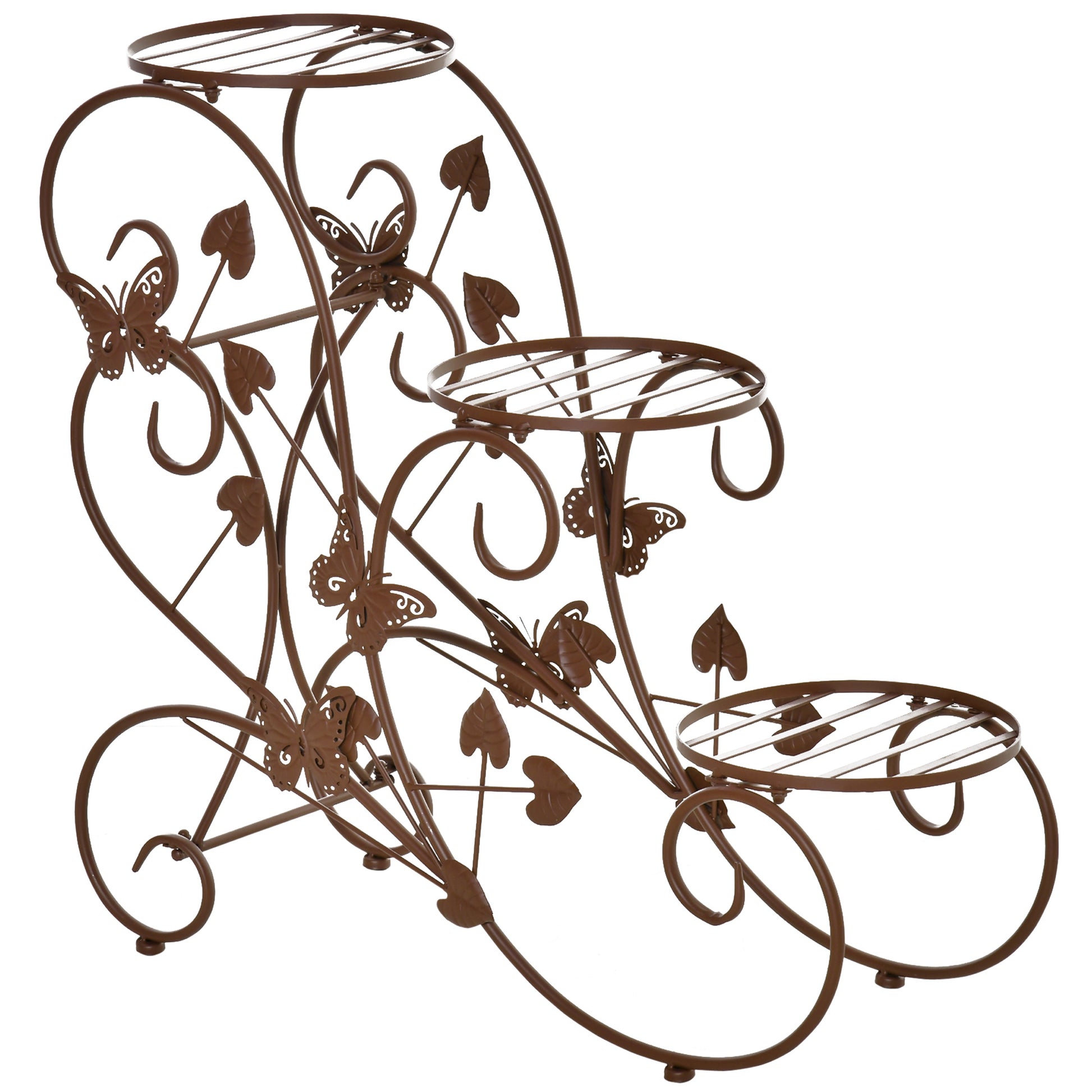 Outsunny Stojan na kvety, Stojan na rastliny, Trojtierový stojan na kvety, Kvetinový stojan v francúzskom štýle, Stojan na rastliny, Kov, Bronz, 76 x 27 x 67 cm