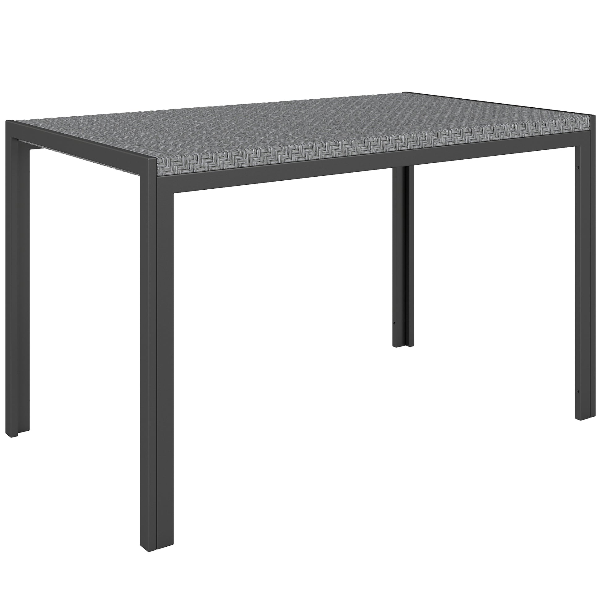Outsunny syntetický ratanový záhradný jedálenský stôl vonkajší terasový stôl s odolnou kovovou konštrukciou 120x70x72 cm šedý a čierny