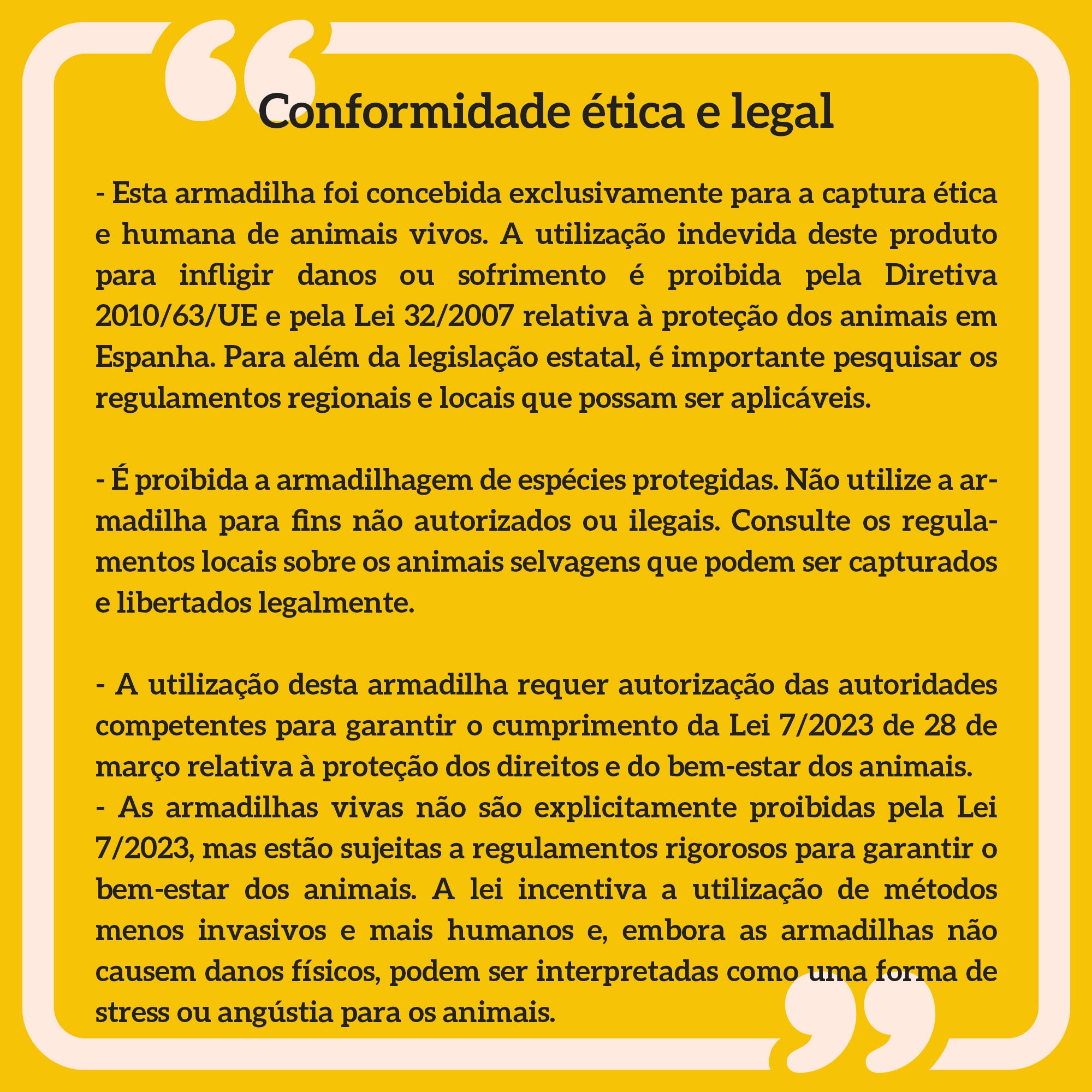 - - DÔLEŽITÉ: Použitie tejto pasce vyžaduje povolenie od príslušných orgánov na zabezpečenie dodržiavania predpisov o ochrane zvierat a životného prostredia. Je nevyhnutné získať potrebné povolenia pred jej použitím.