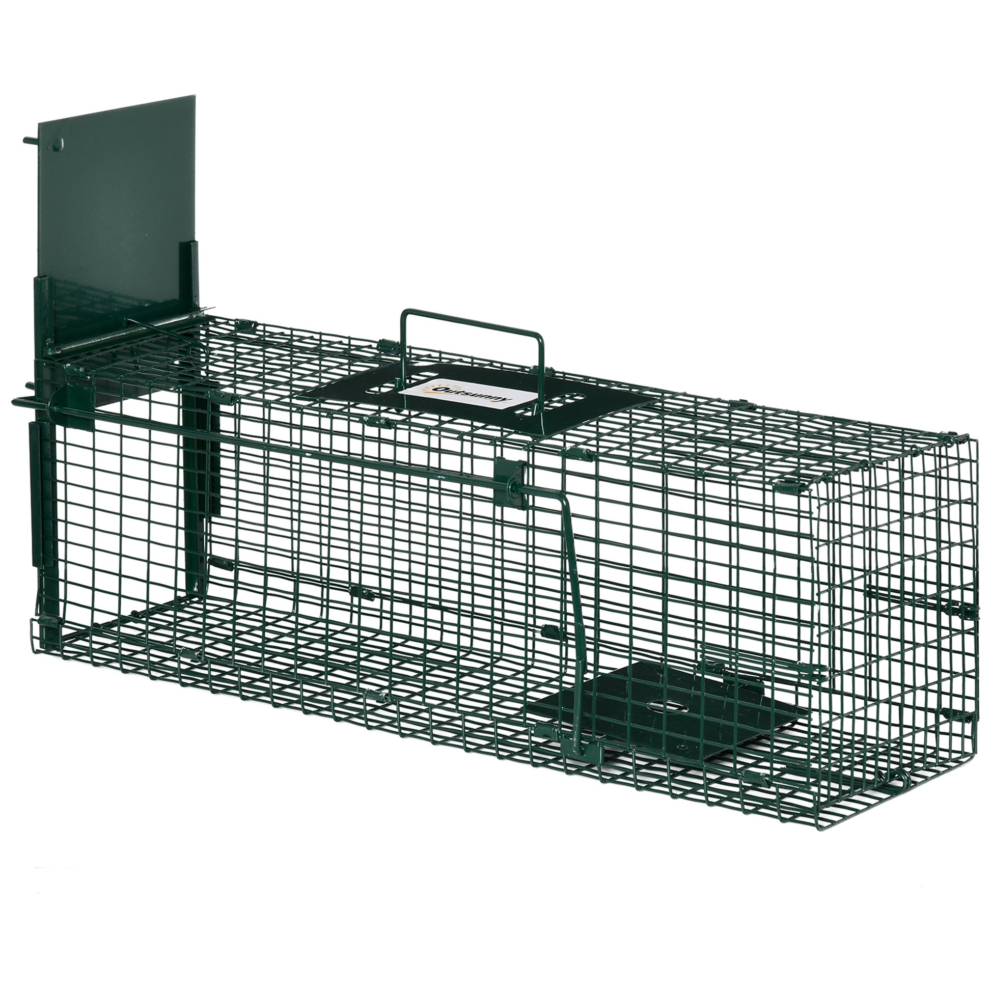 Outsunny Živá Pasca na Zviera s Metalovým Dvierkom a Rukoväťou pre Králiky a Malé Tuliace 60x18x20 cm Tmavozelená