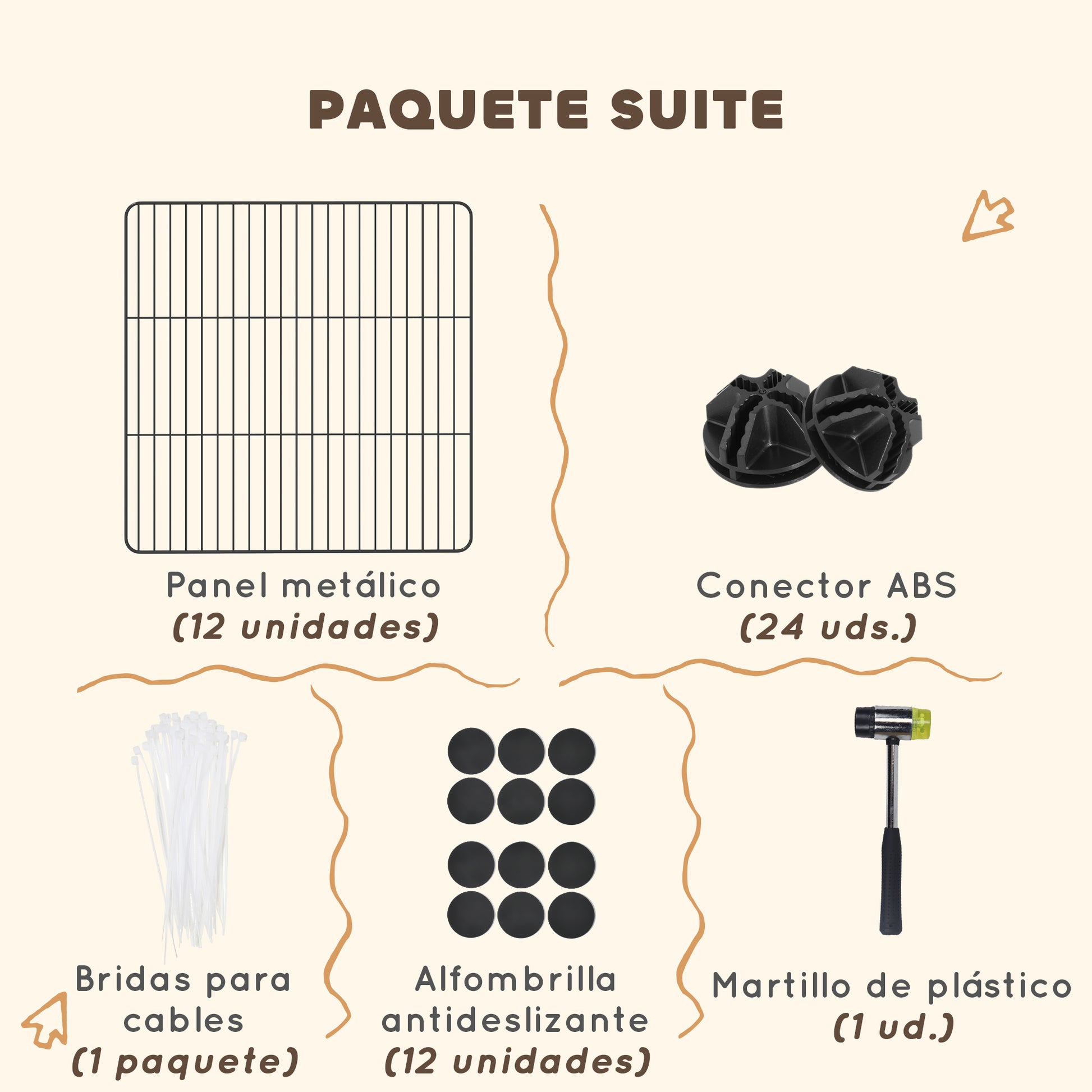 - - PEVNÁ KONŠTRUKCIA: Vyrobený z 12 dielov oceľového drôtu, tento výbeh pre malé zvieratá je odolný a praktický. Jeho protišmykové nohy a zipsy poskytujú stabilitu a jeho ľahký dizajn umožňuje ľahké prenášanie na dovolenku alebo návštevy.
