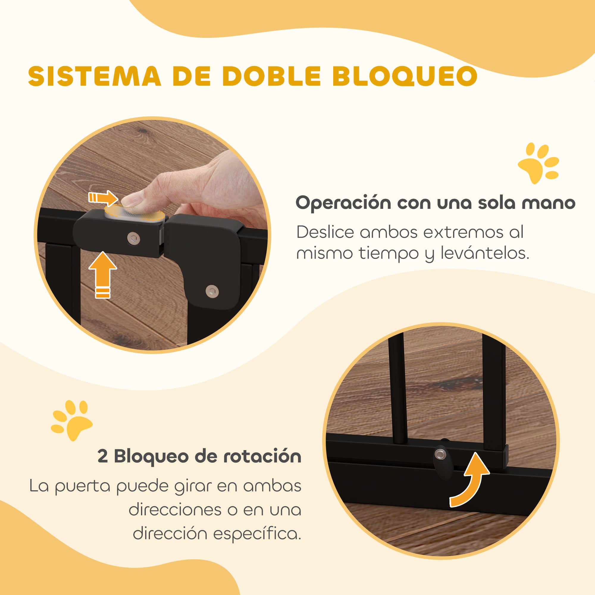 - - DVOJSMERNÉ DVERÁ S DVOJITÝM ZÁMKOM: Táto psia brána má horný zámok a dva zámky, jeden na každej strane, ktoré vám umožňujú zvoliť smer otvárania alebo úplne zabezpečiť bránu pomocou oboch naraz.