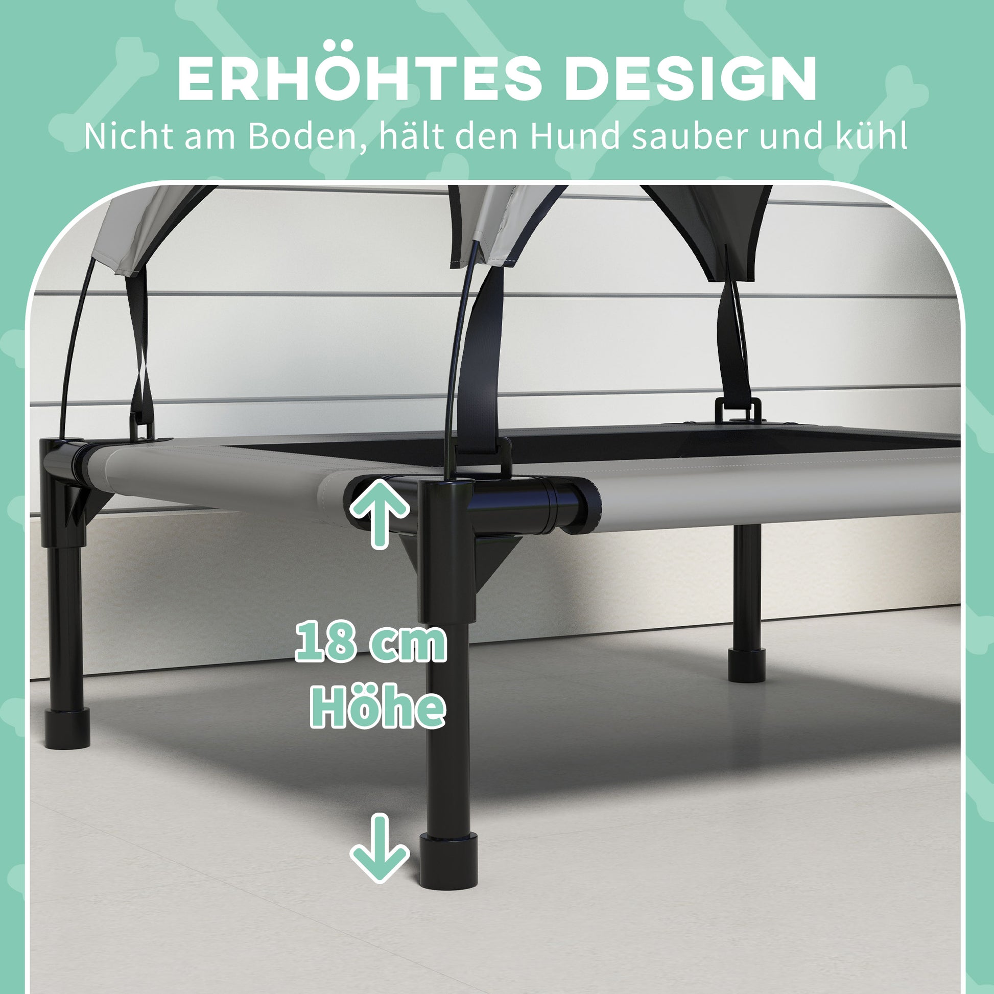 PawHut Zvýšená Posteľ pre Psov s Prístreškom, Outdoorový Psí Lounge s Strechou, Priedušný, pre Malé a Stredné Psy Svetlo šedý Oxford 76 x 61 x 69,5 cm