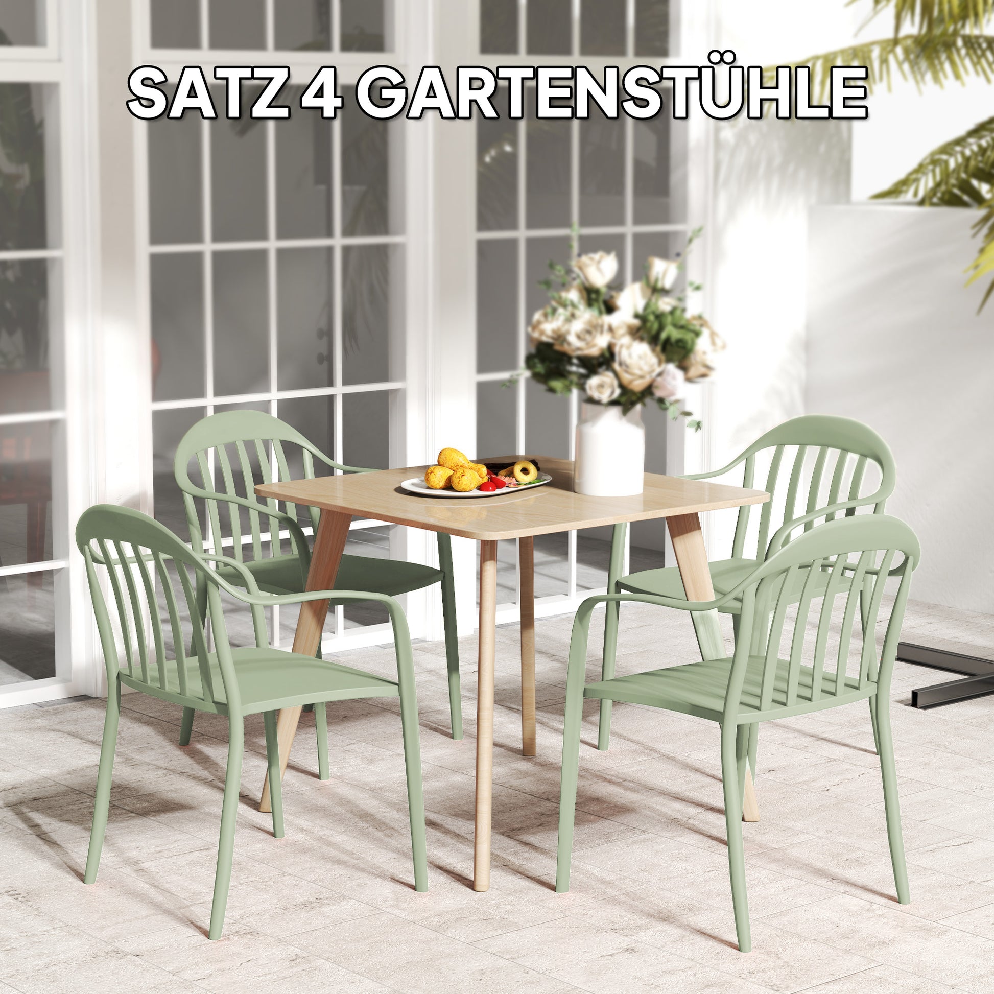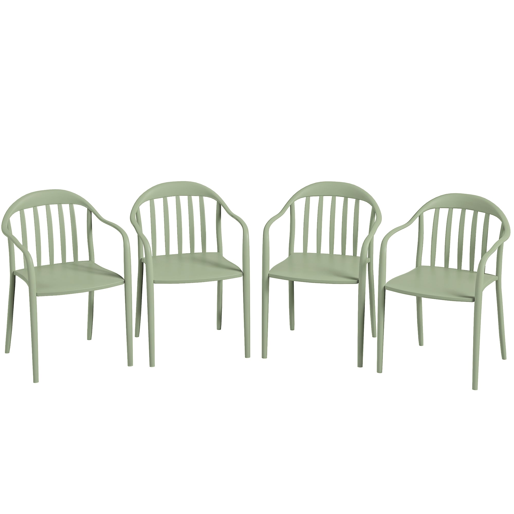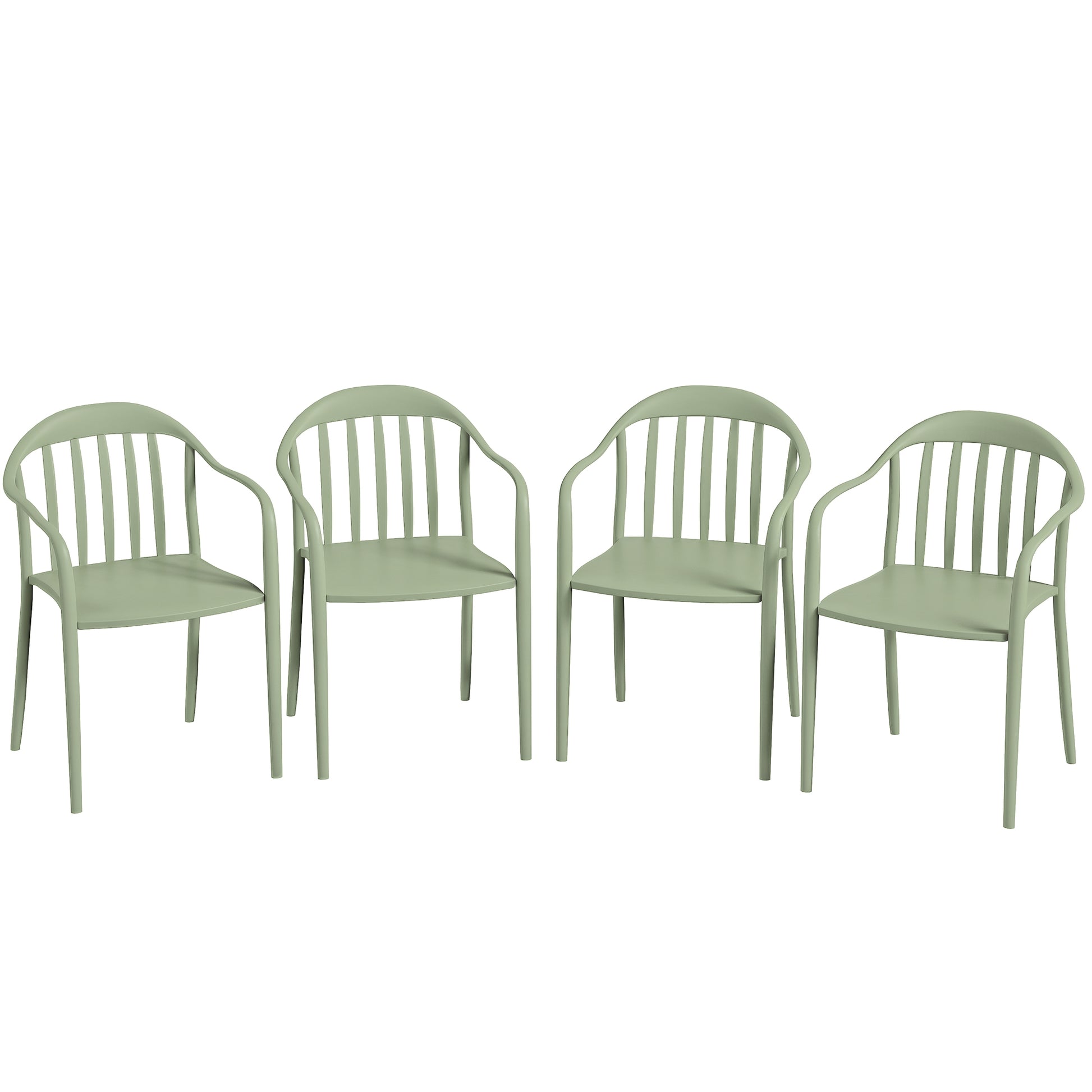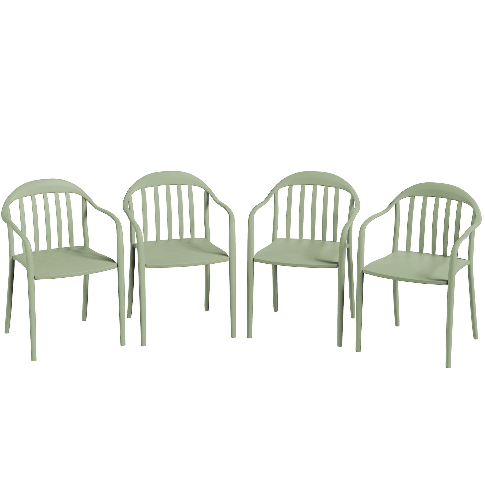 Set záhradných stoličiek Outsunny 4-dielny - Odolné plastové záhradné stoličky, stohovateľné so zmyslom pre pohodlie a maximálnym zaťažením 120 kg - Záhradný nábytok na dvor, do záhrady alebo na balkón, zelený