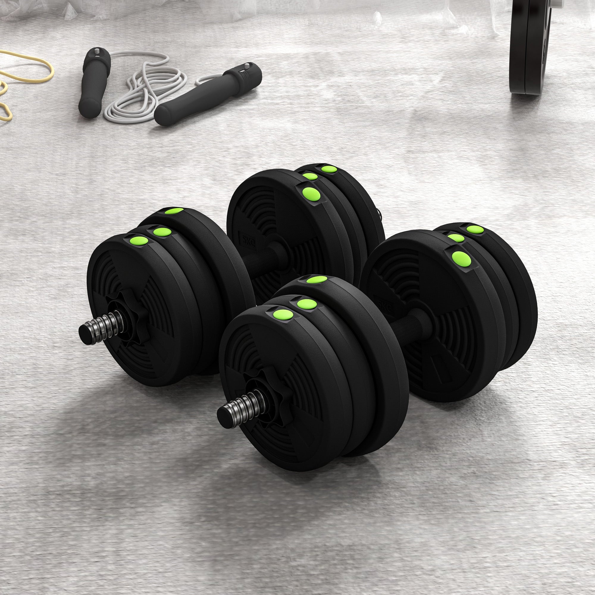 SPORTNOW 20kg Sada činkového setu 2v1 s činkou, protišmykové držadlo, nastaviteľné činky na silový tréning doma, v kancelárii alebo v posilňovni čierna a zelená