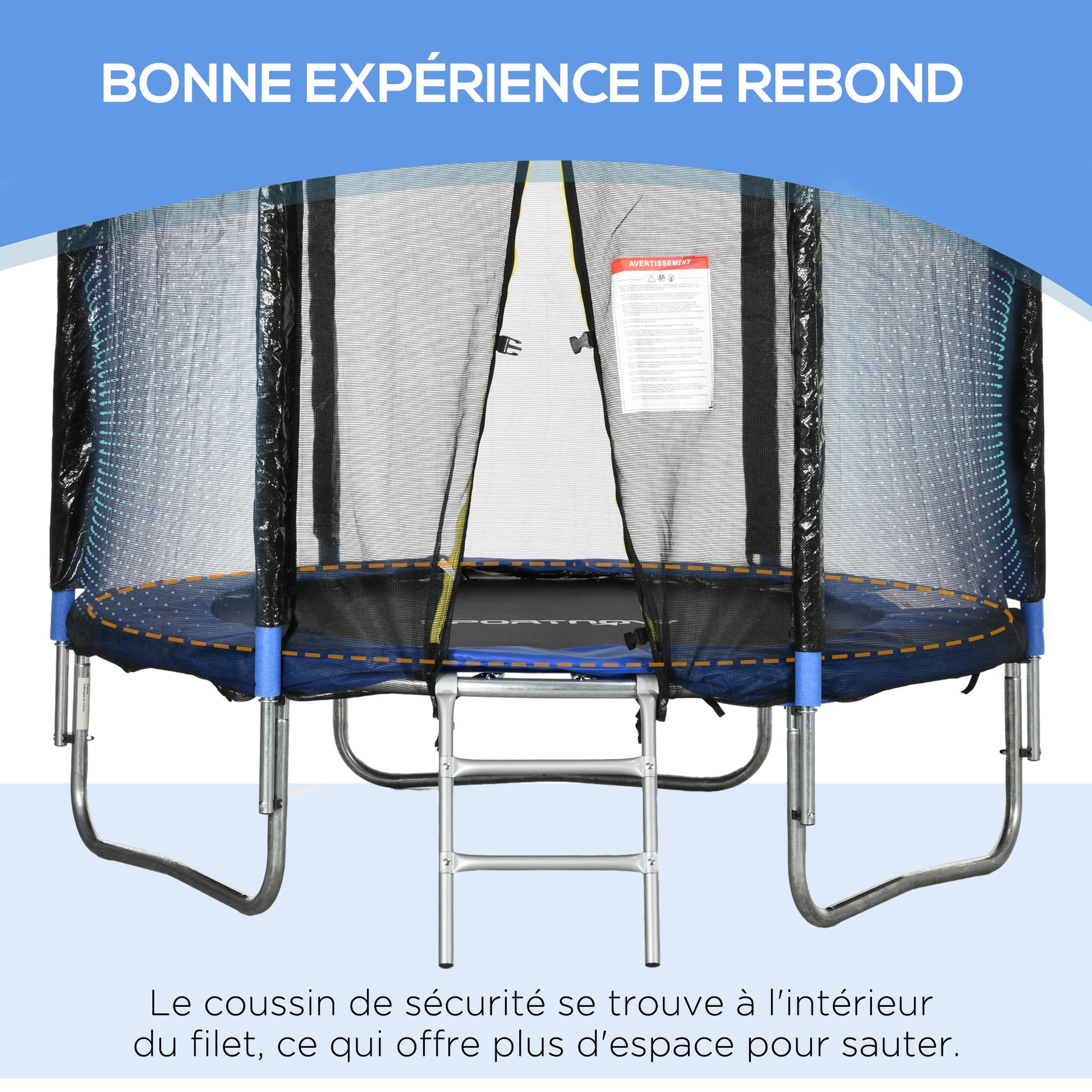 - - JEDNODUCHÉ POUŽITIE: Bezpečnostná sieť so zipsovými dverami pre jednoduchý vstup a výstup. 6 polstrovaných stĺpikov, kryty pružín a rebrík na lezenie hore a dole