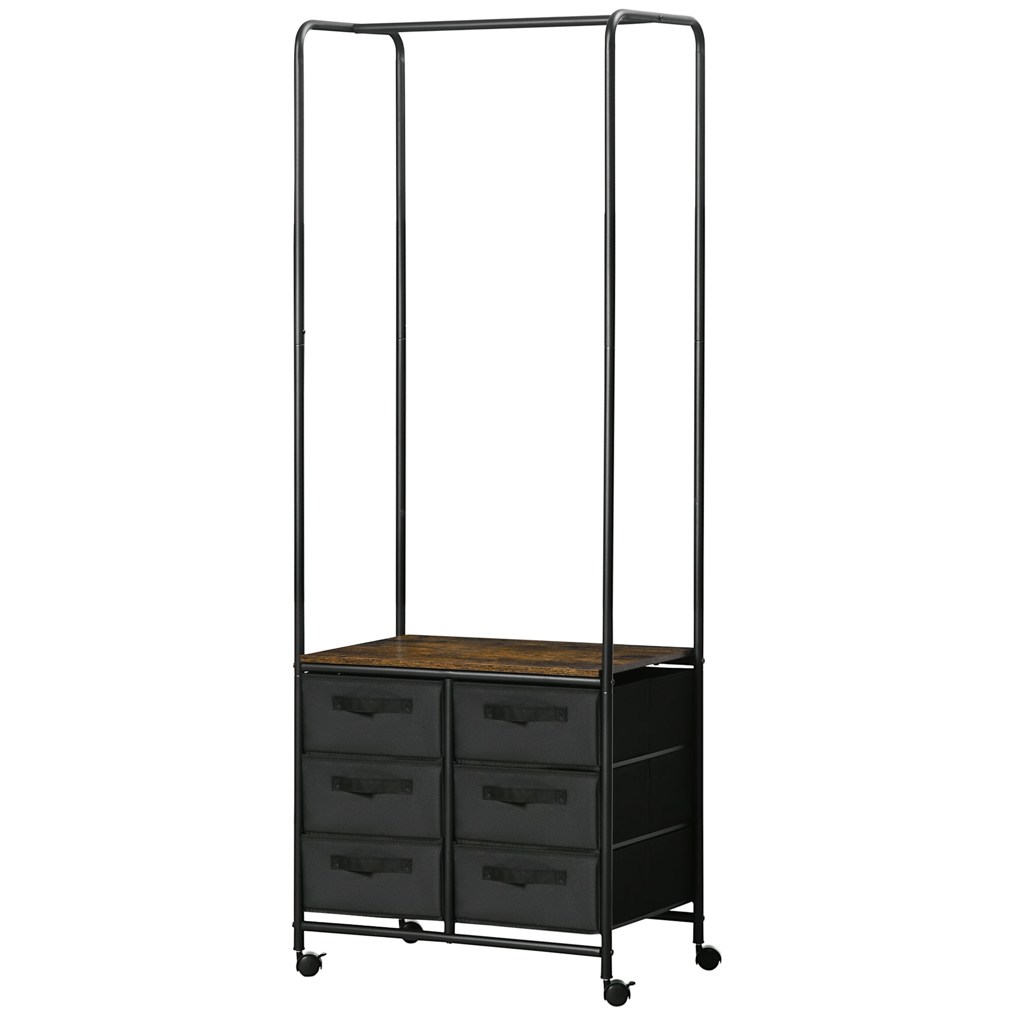HOMCOM Industrijski Štíl Obleka s 6 Tkaninskimi Predali in 4 Kolesi - 63,5 x 40 x 172,5 cm Črna Rjava