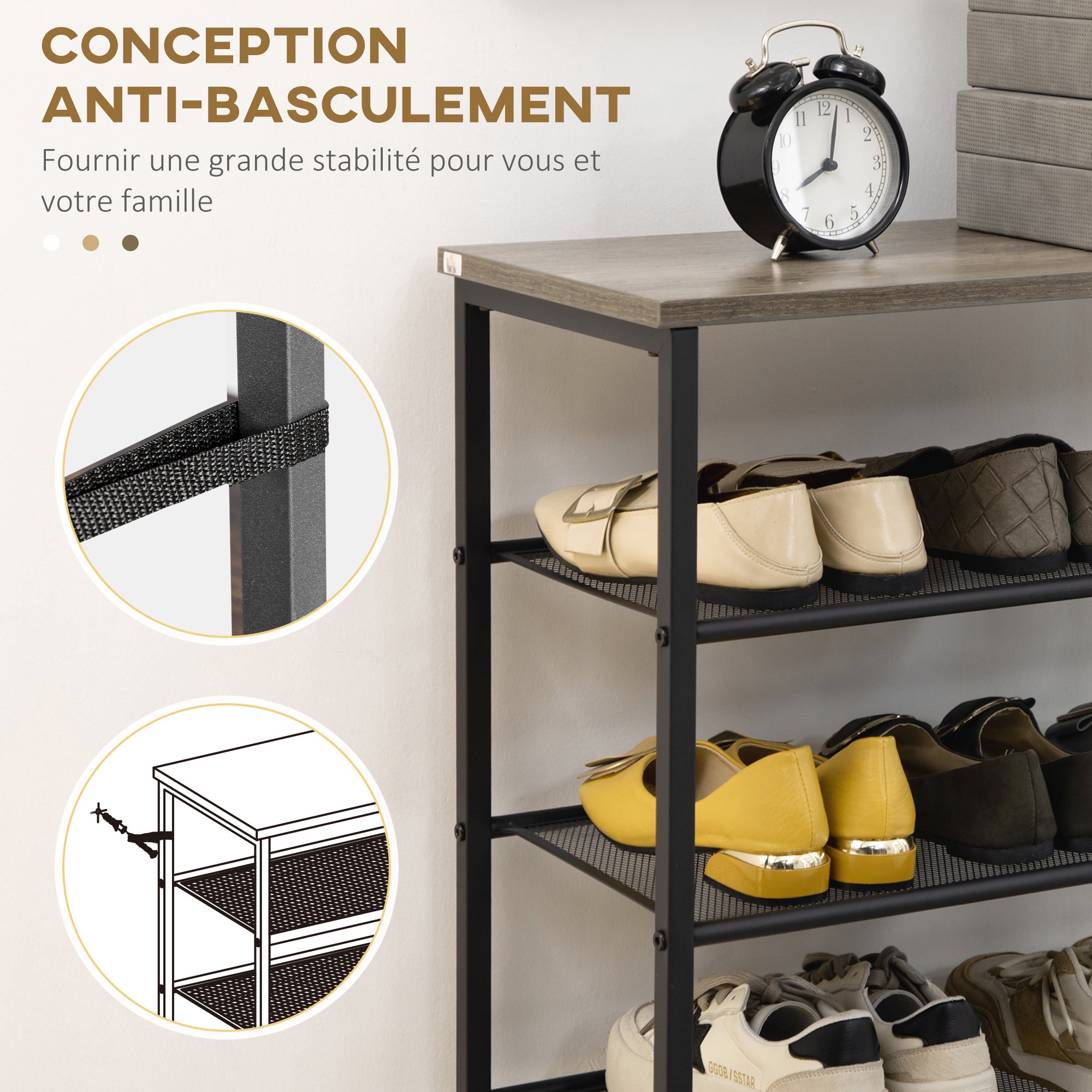 HOMCOM Stojalo za plašče s policami za čevlje, pohištvo za predsobe, industrijski slog 60D x 40Š x 167,5V cm, svetel lesni videz, beli kovinski