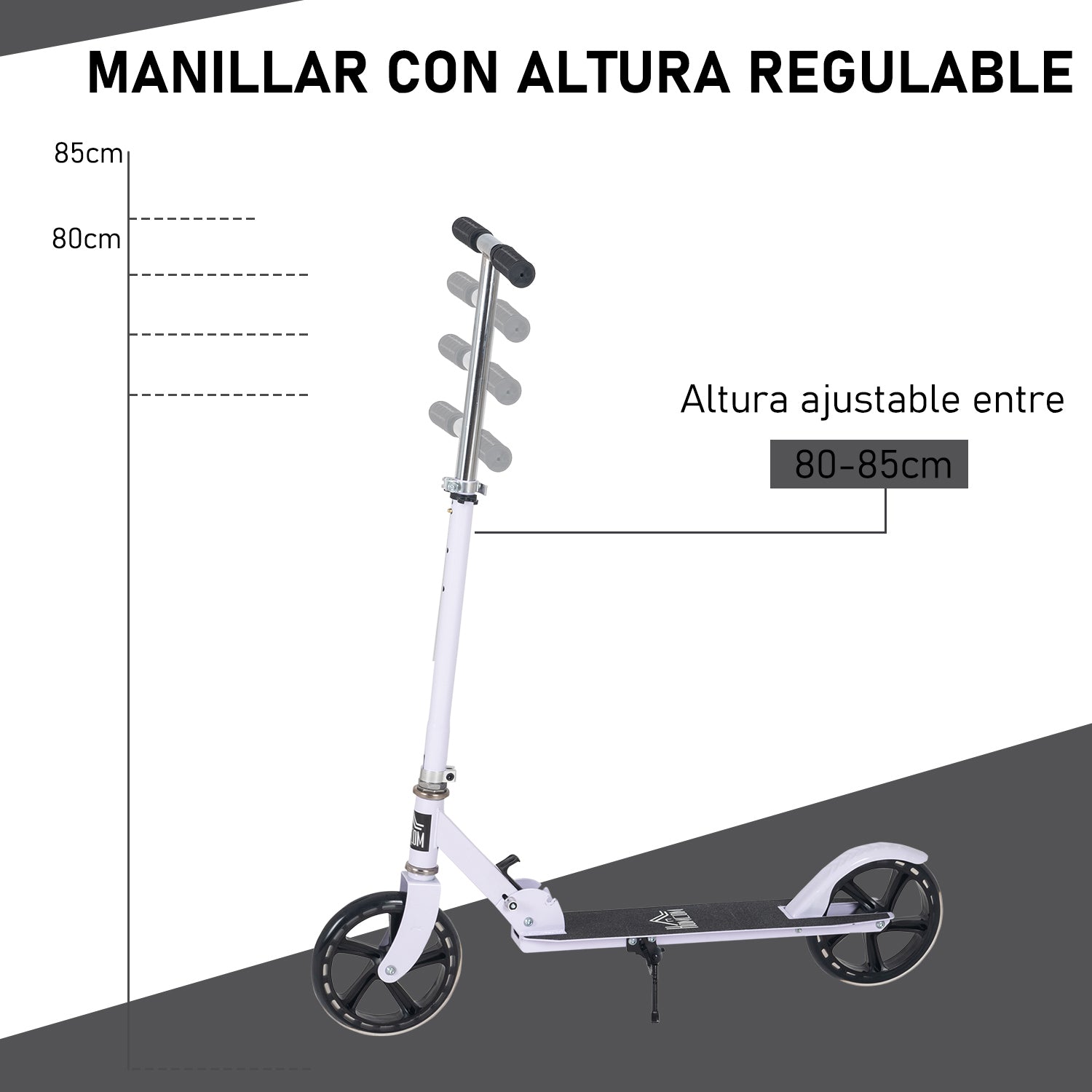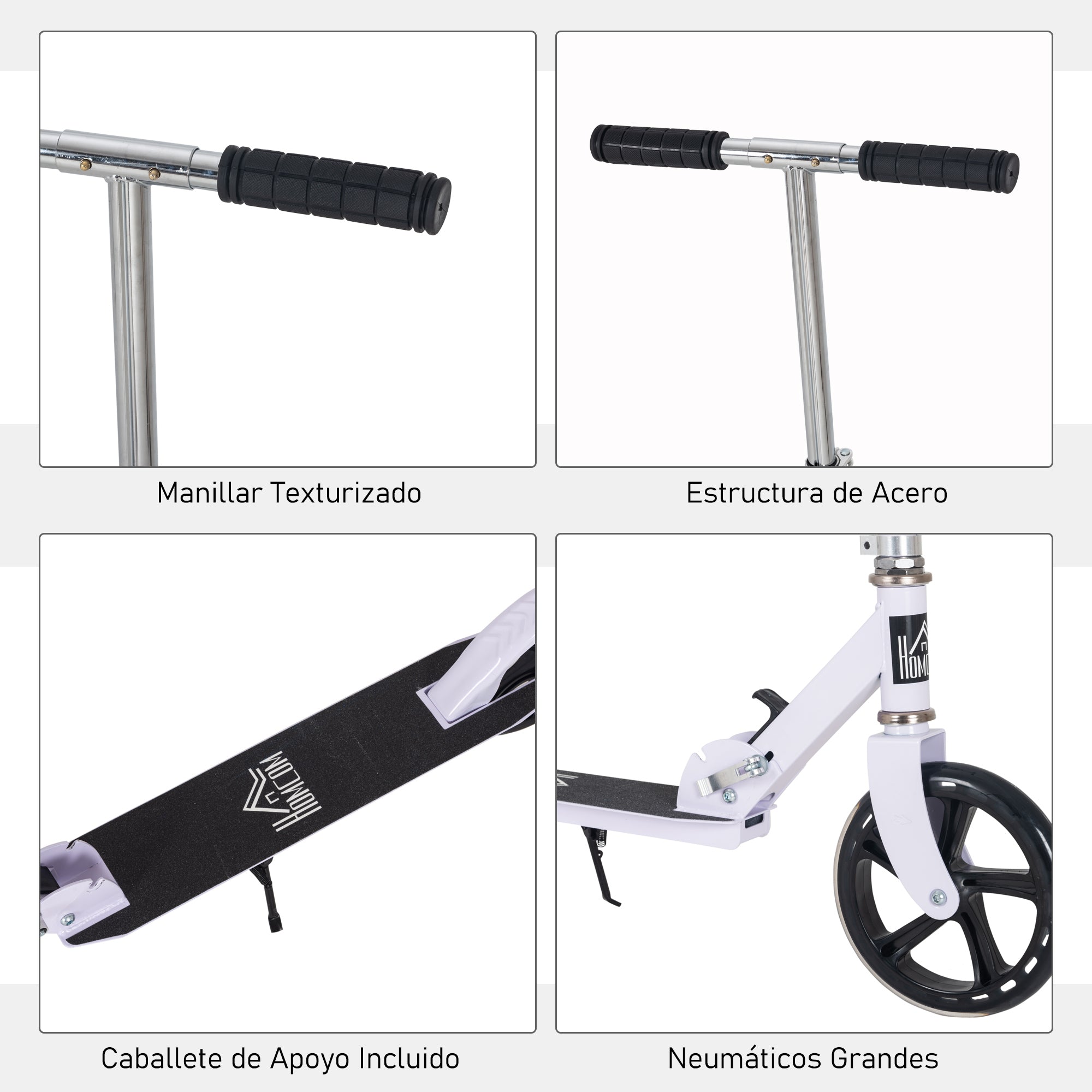 HOMCOM Zložljiv Skuter za Otroke 7-14 Let, Nastavljiva Višina Krmila, 4 Stopnje z Zavoro, 88x37x100 cm Bela