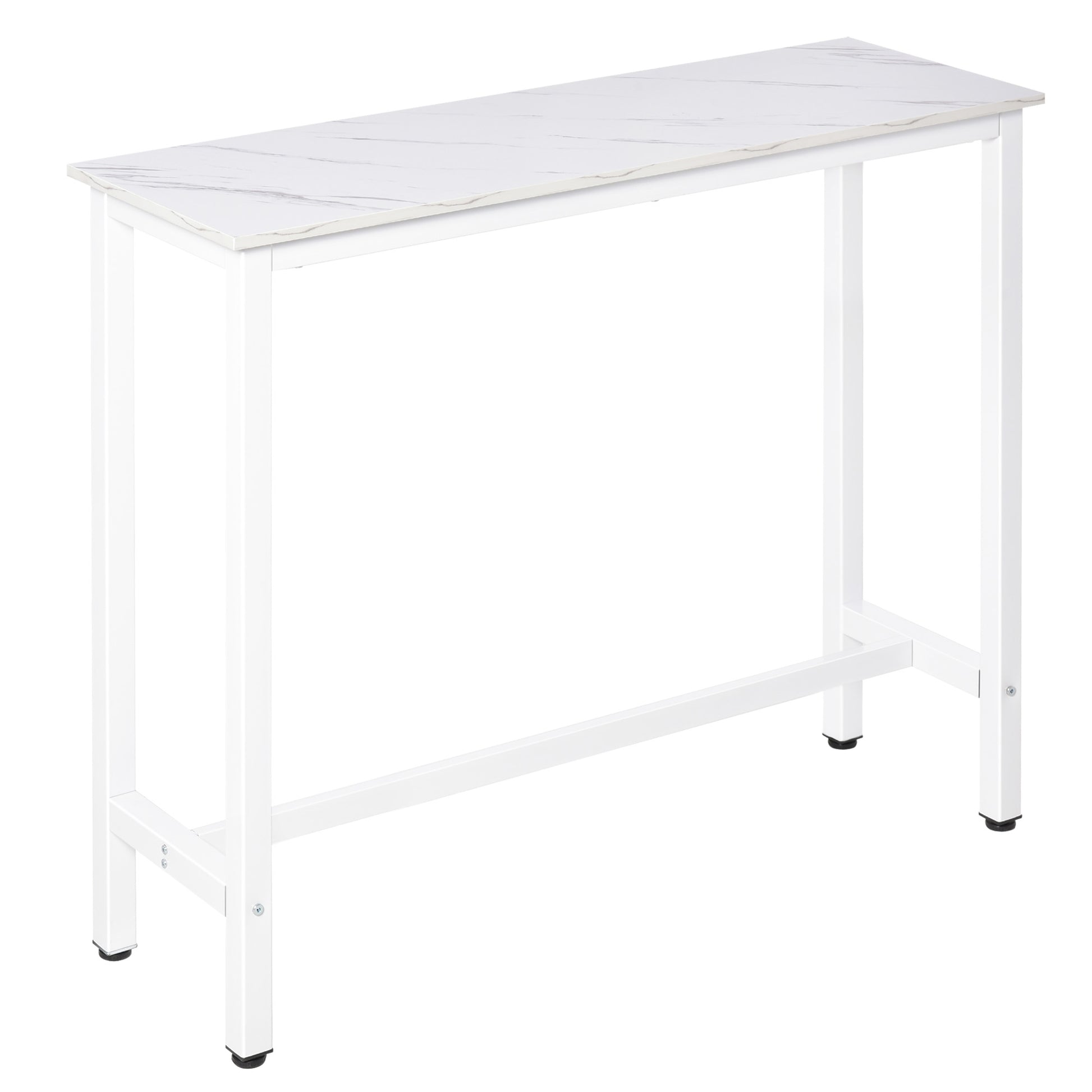 HOMCOM Barna Miza z Melaminsko Pulti s Efektom Mramora in Jeklenimi Noge Moderni Stil za Kuhinjo, Kavarnico ali Jedilnico 120x40x100 cm Bela
