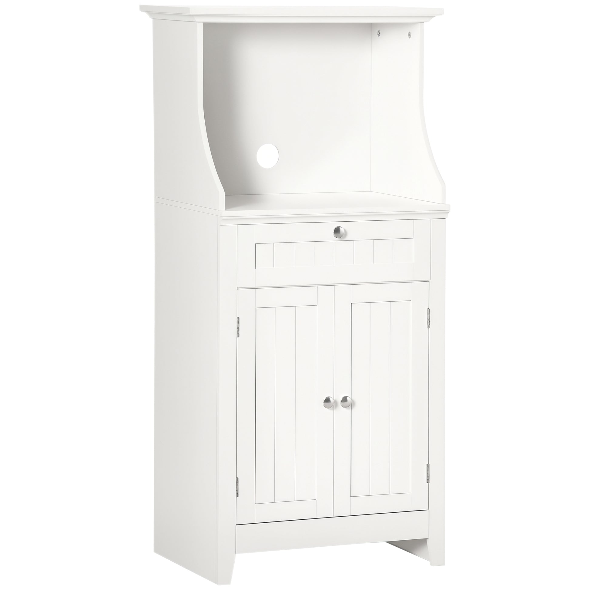 HOMCOM Kuhinjski pripomoček s kabineto za mikrovalovne pečice, stranska omarica s predalom in policami, 2 vrata, zasnova proti prevračanju za jedilnico 60x40x122.5 cm Bela