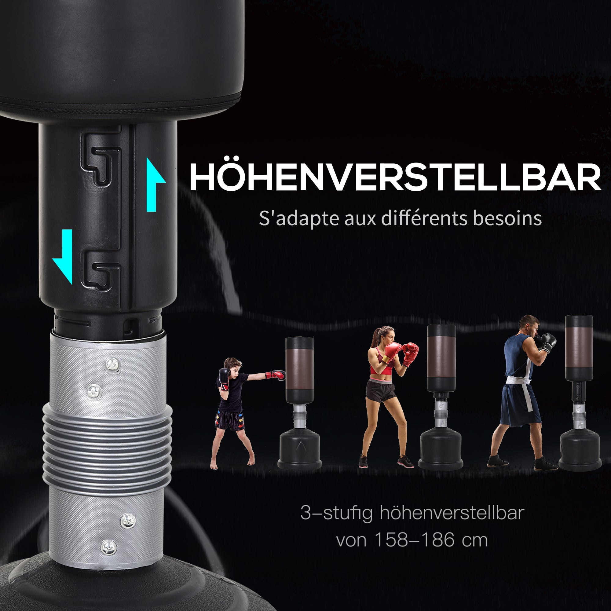 HOMCOM Prosta Stojala Boksarska Torba Dummy Trening Partner Boksarska Torba 158-186 cm Višina Nastavljiva NOVA Črna + Rjava