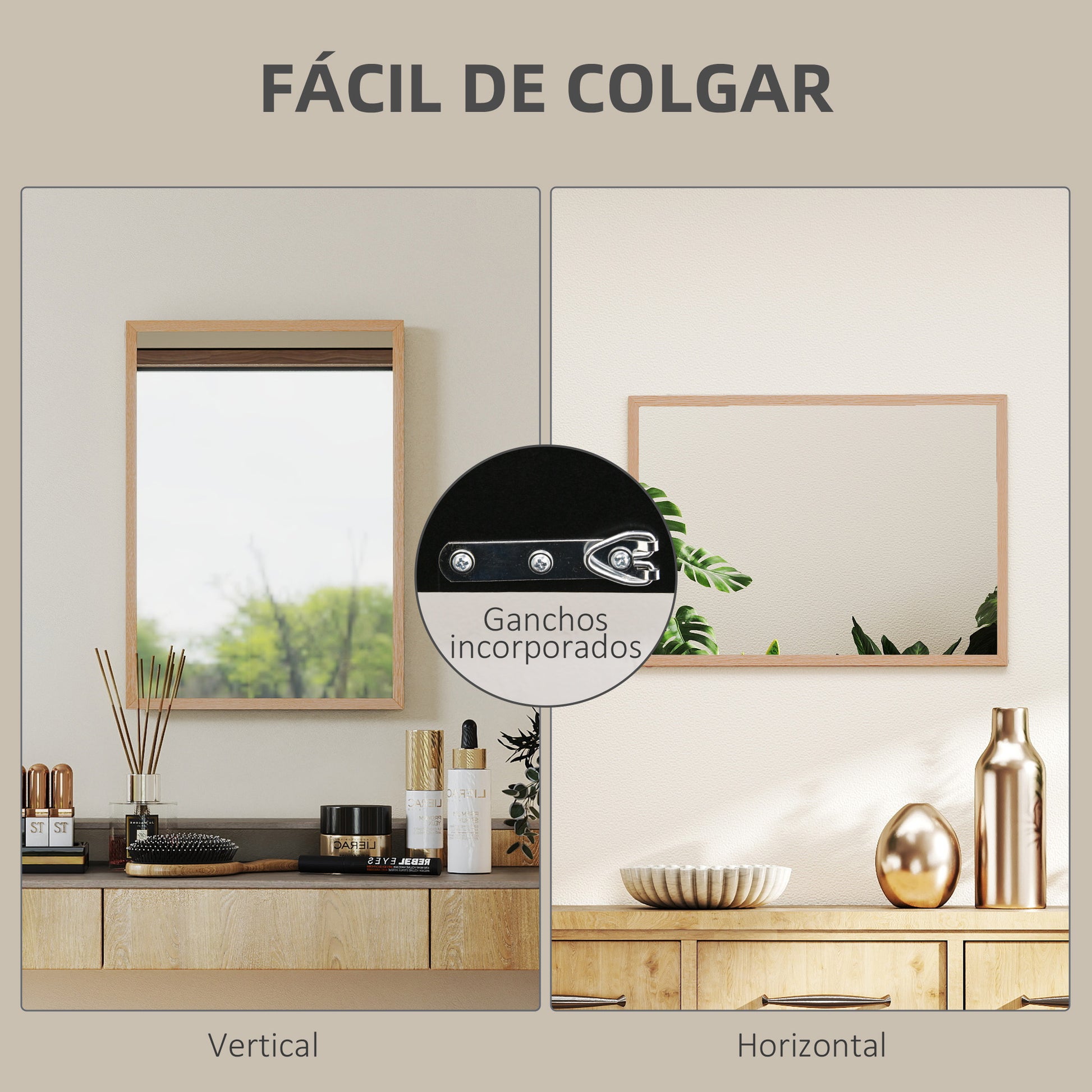 HOMCOM Stenska Ogledala Kopalniško Ogledalo 50x70 cm Pravokotno Dekorativno Ogledalo za Dnevno Sobo Vhodno Dvorano Horizontalno ali Vertikalno Naravno