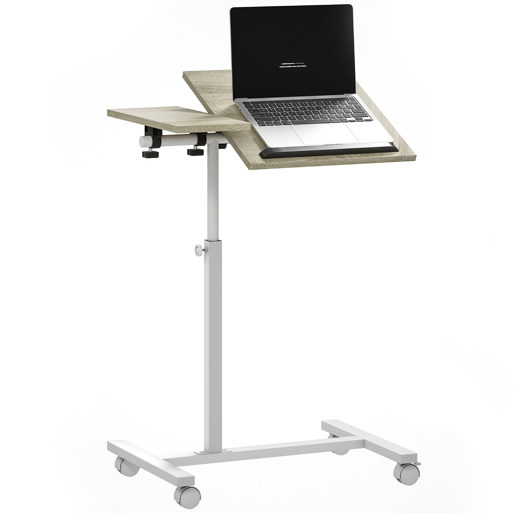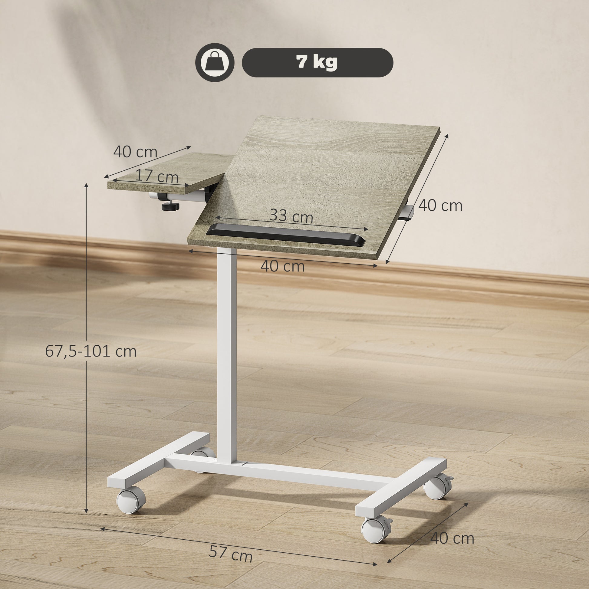 HOMCOM Stranska Miza na Kolesih s Prilagodljivo Višino, Nagnjena Površina in Kovinska Konstrukcija za Spalnico, Dnevno Sobo ali Pisarno 57x40x67.5-101 cm Hrast in Bela