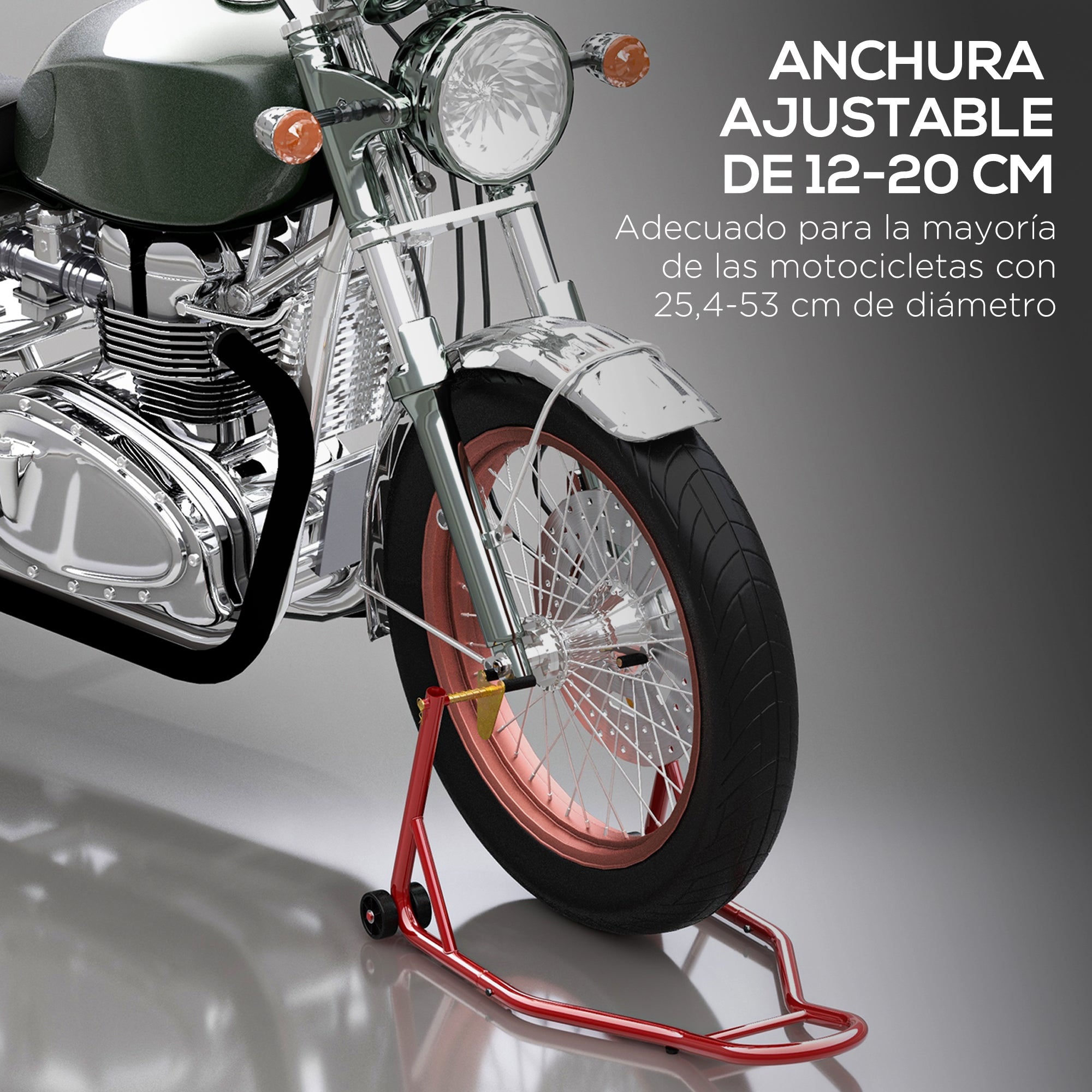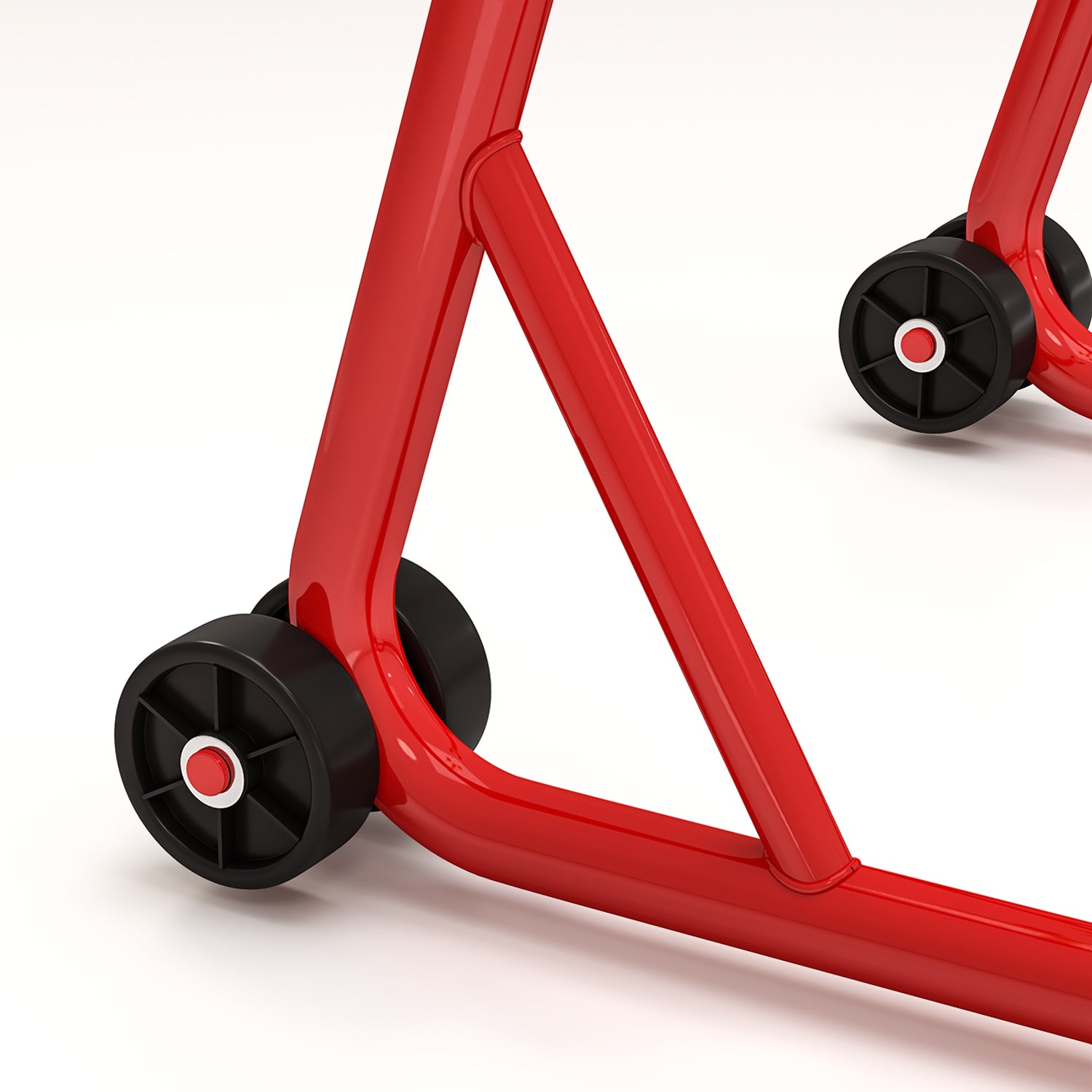 HOMCOM Univerzalni sprednji dvigalki za motocikle - Prenosen in mobilni jeklen podporni stojalo z kolesi za popravilo in parkiranje v rdeči barvi 80x50x40 cm