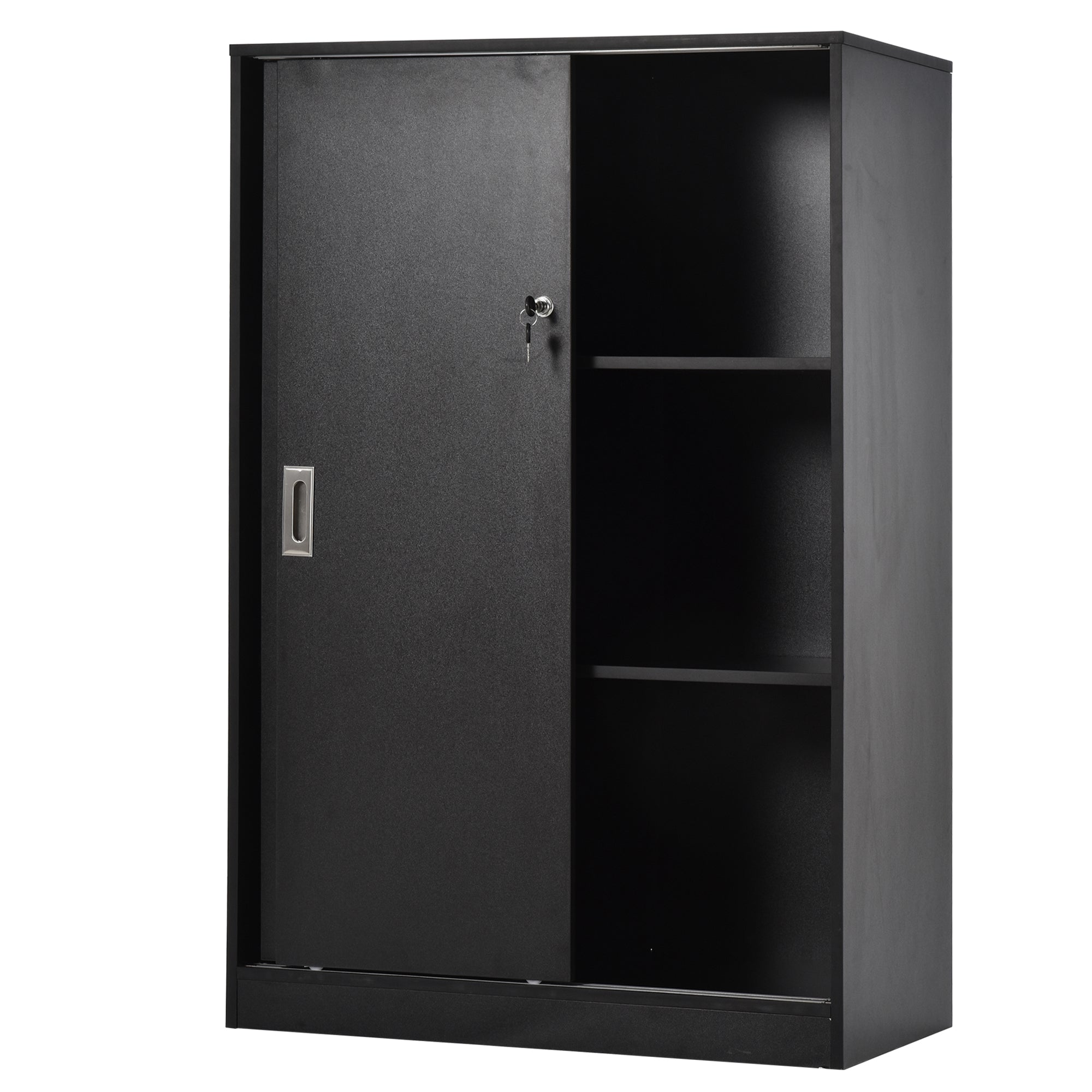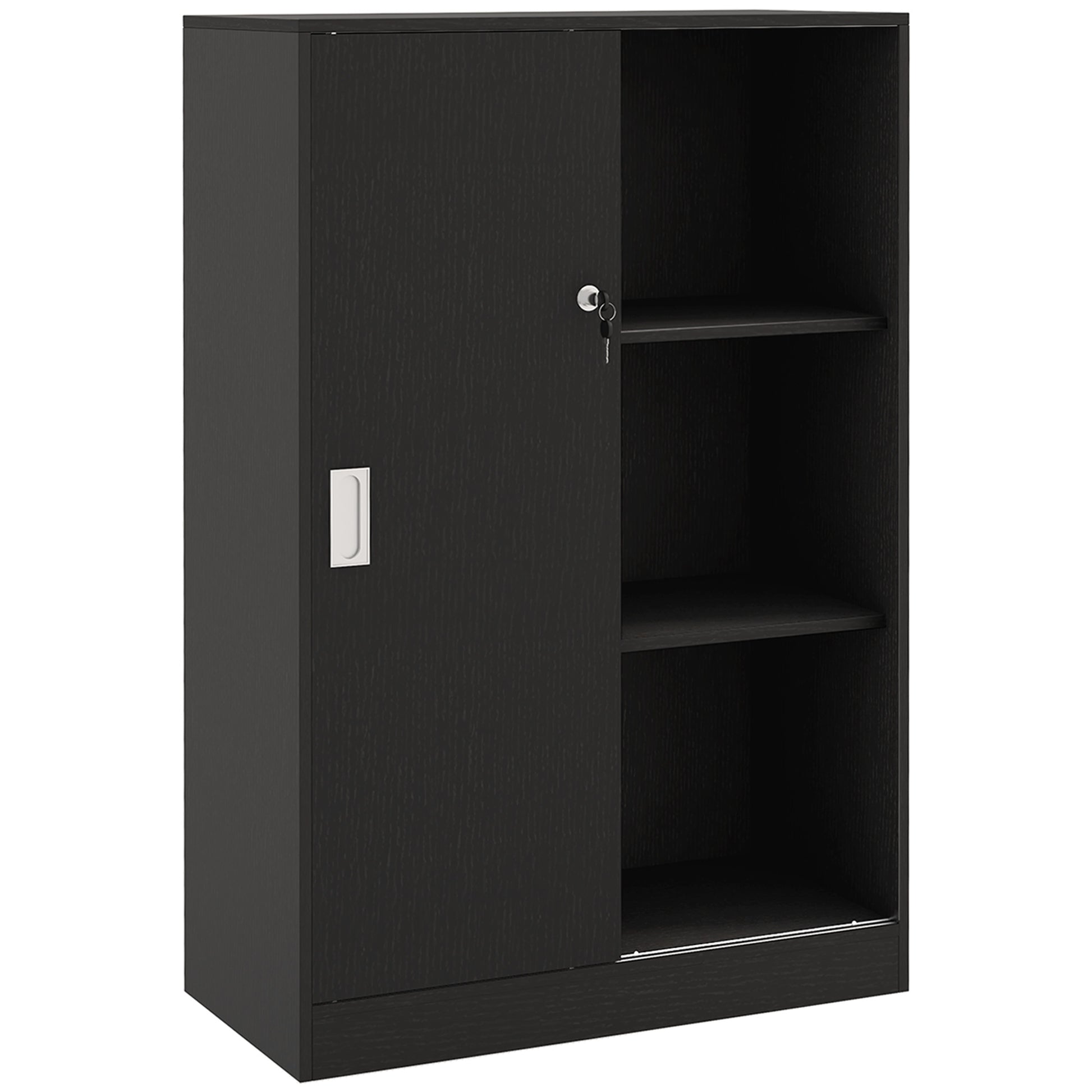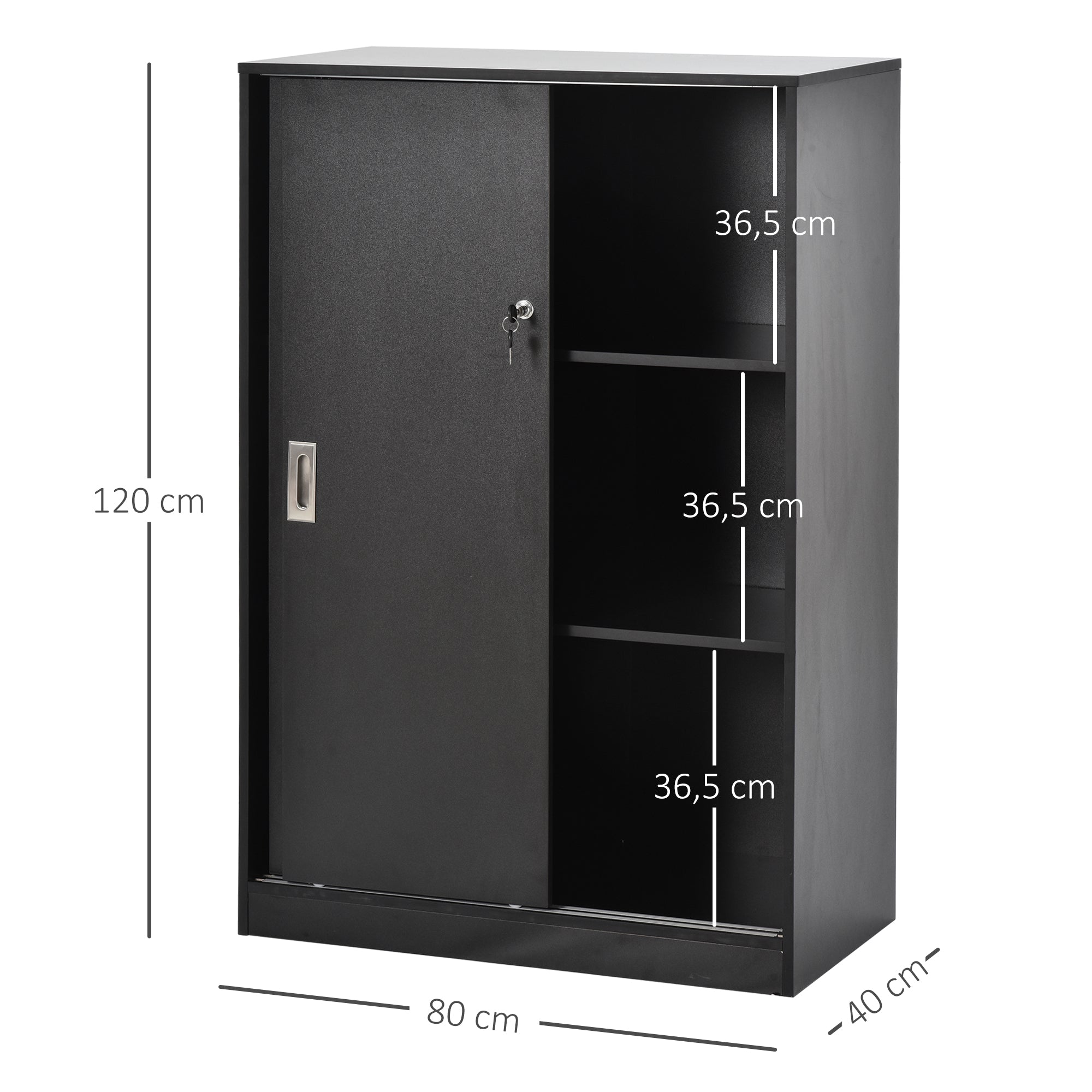HOMCOM Zaklenjen Pisarniški Ombor s Drsnimi Vrati dim. 80Š x 40G x 120V cm 2 Police Iz Particle Board Črna
