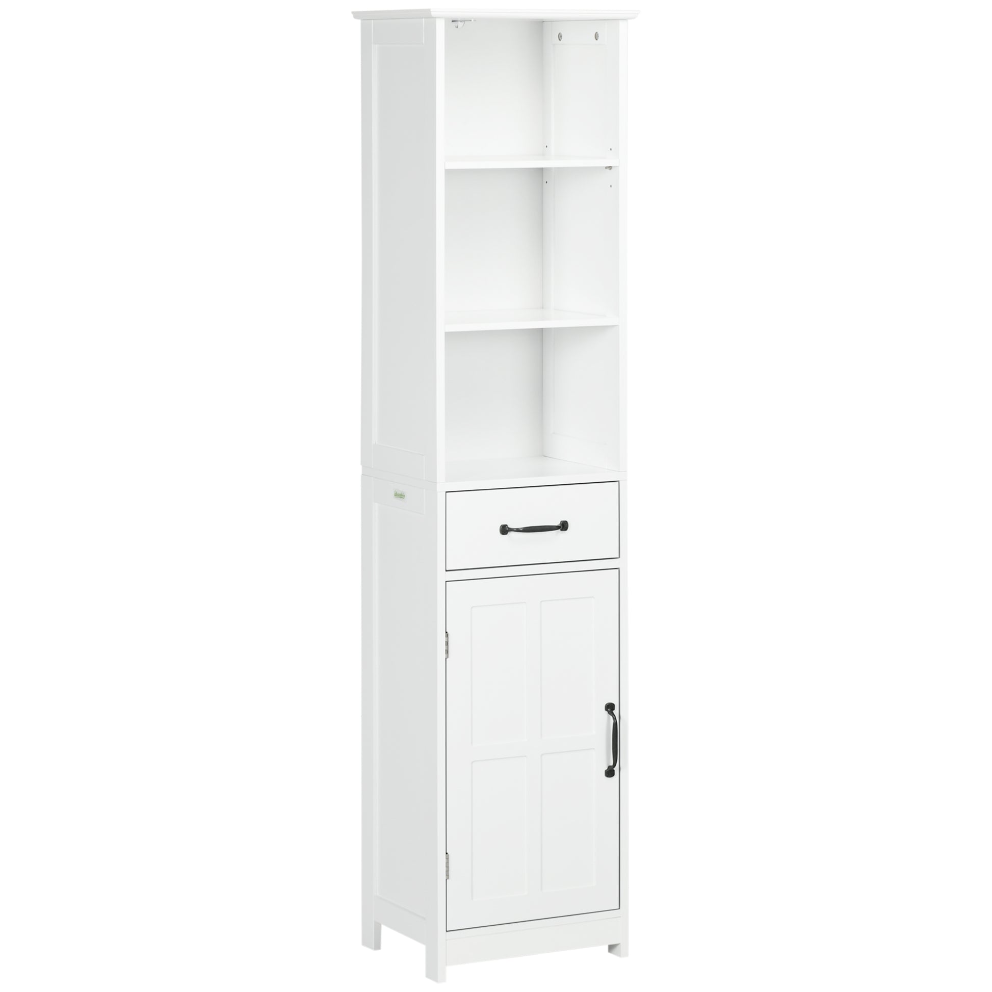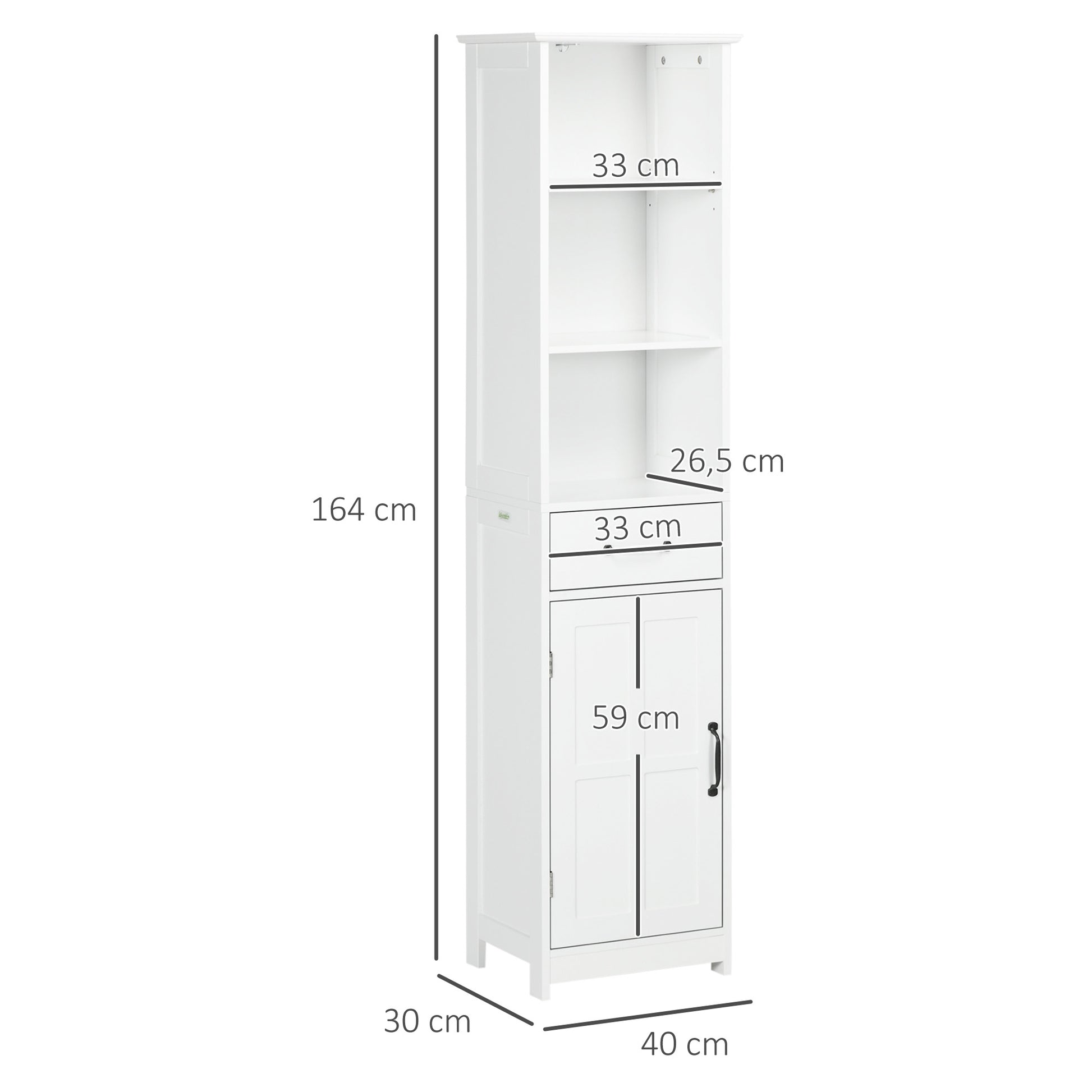 Kleankin ožji kopalniški omarica s 3 odprtimi predali, predalnikom in nastavljivo polico, omarica za kopalnico za majhne prostore, 40 x 30 x 164 cm, bela