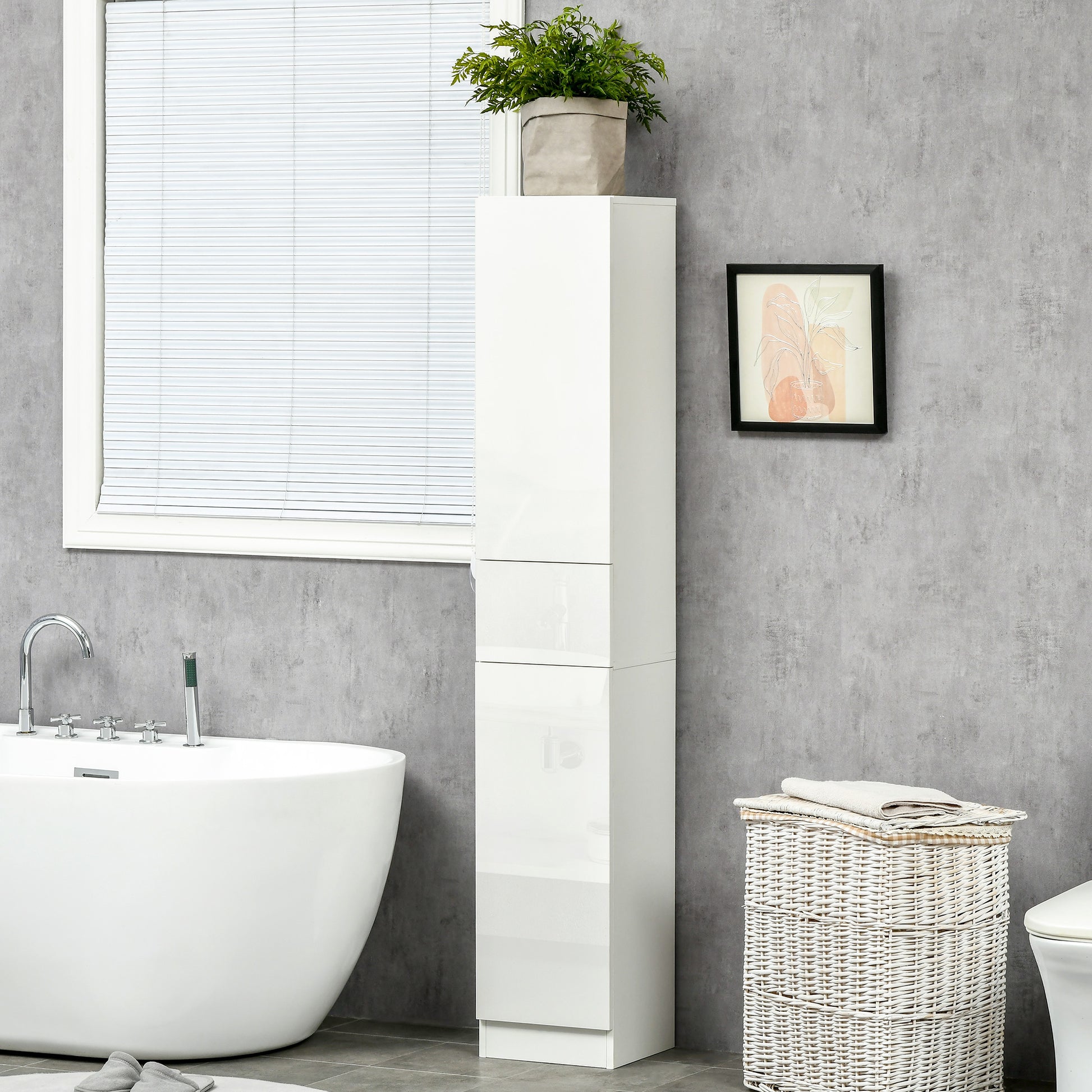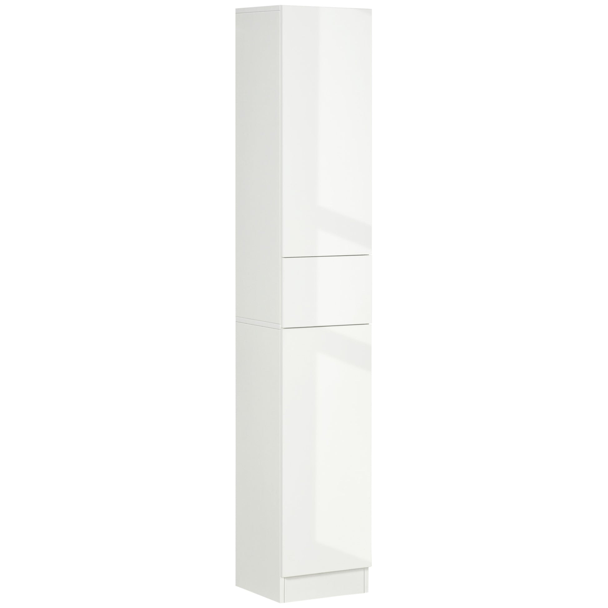 kleankin Visoki kopalni omarica z 1 predalom in 5 odprtimi policami, pomožni steber za kopalnico, dnevno sobo ali spalnico, sodobna zasnova 30x28x170 cm, bela sijaj