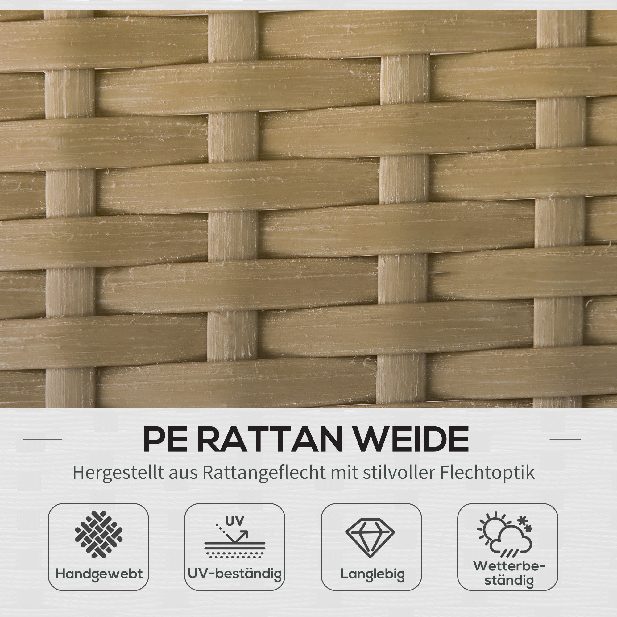 - - Trajni materiali: Komplet sedežne garniture je izdelan z jeklenim ogrodjem odpornih na rjo, medtem ko je visokokakovostna PE pletenina dovolj trdna, da zdrži vse vremenske razmere.