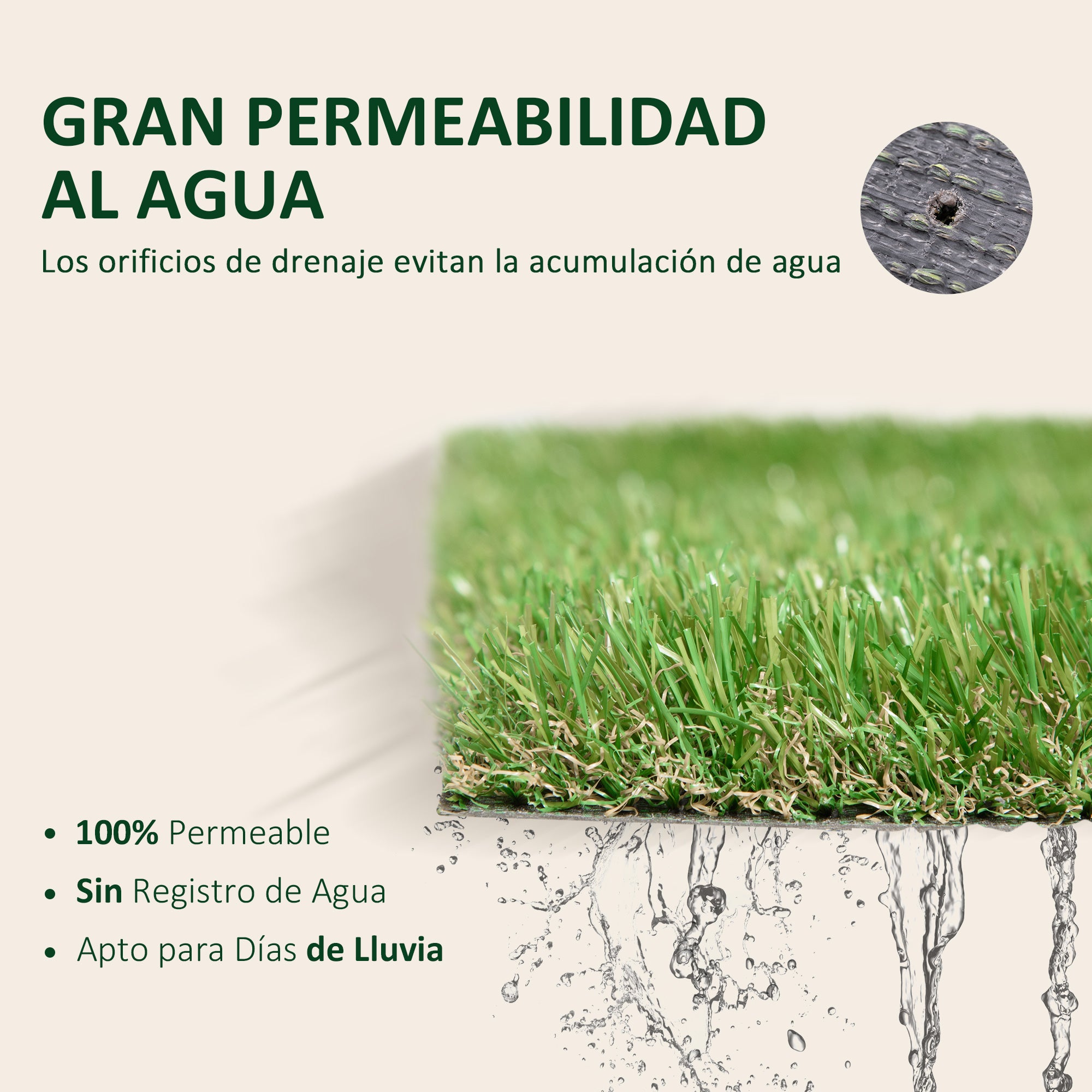 - - DRNAŽNE LUKNJE: Ta roll umetne trave ima prepustne drenažne luknje za preprečevanje nabiranja vode.