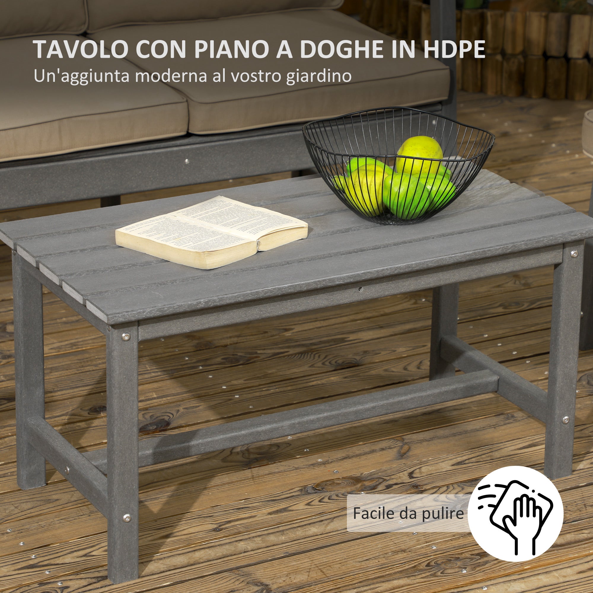 Outsunny vrtny lounge set iz HDPE z dvosedom, 2 naslonjaloma in kavčnikom, 4-delni zunanji set s blazinami, temno siva