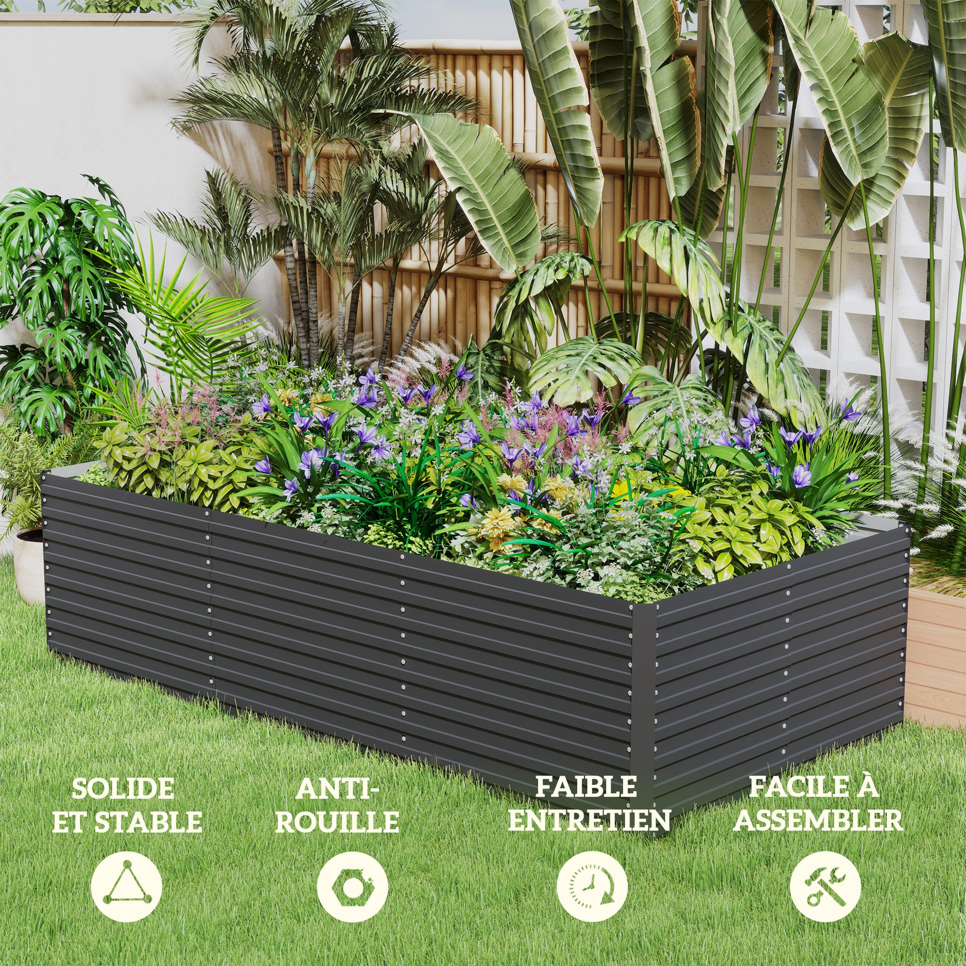 - - STABILNA STRUKTURA: Zgrajeno s praškom barvanim galvaniziranim jeklom in notranjimi podpornimi elementi, to pravokotno cvetlično ležišče zagotavlja močno in trajno strukturo za dolgotrajno uporabo.