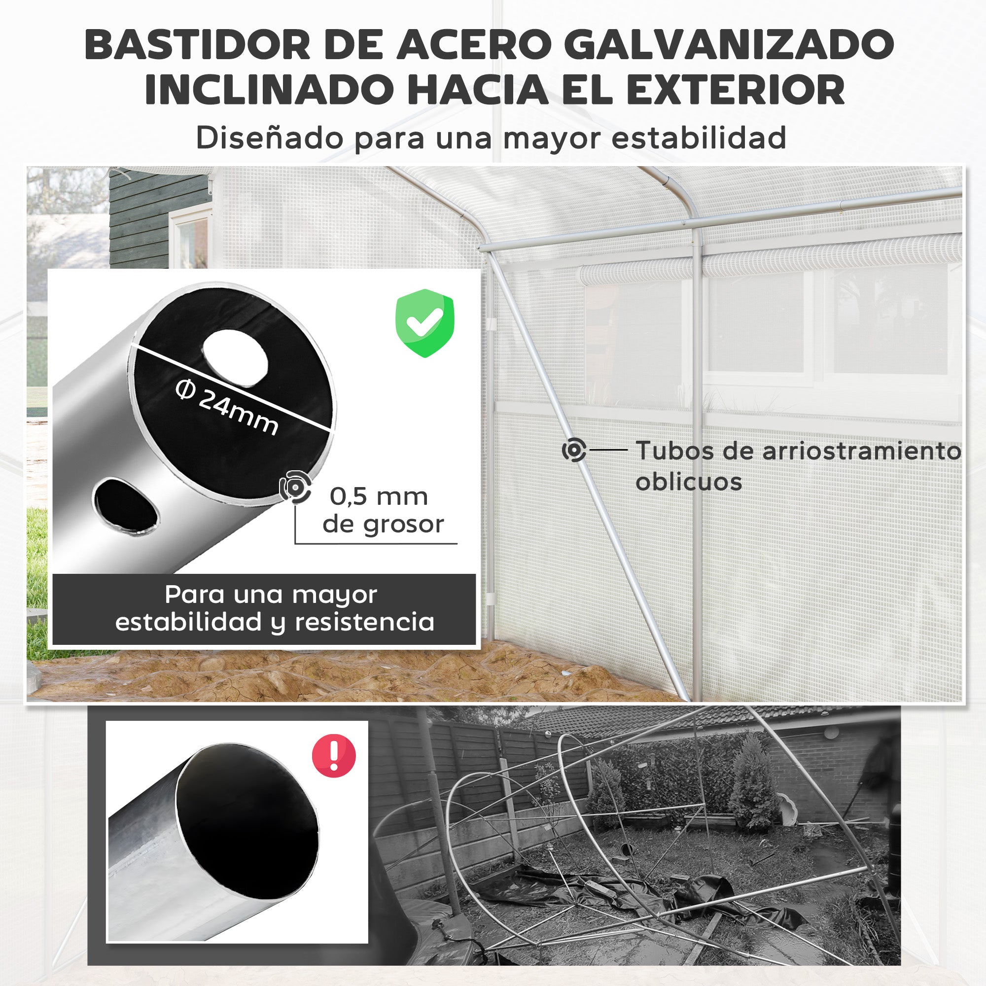 - - MOČNA STRUKTURA: S konstrukcijo iz pocinkanega jekla premera 25 mm, ojačitvenimi cevmi, priborom za zemljo in napenjalnimi vrvicami, ta rastlinjak zagotavlja stabilnost in čvrstost ter zagotavlja, da ostane tunel za gojenje varen in stabilen