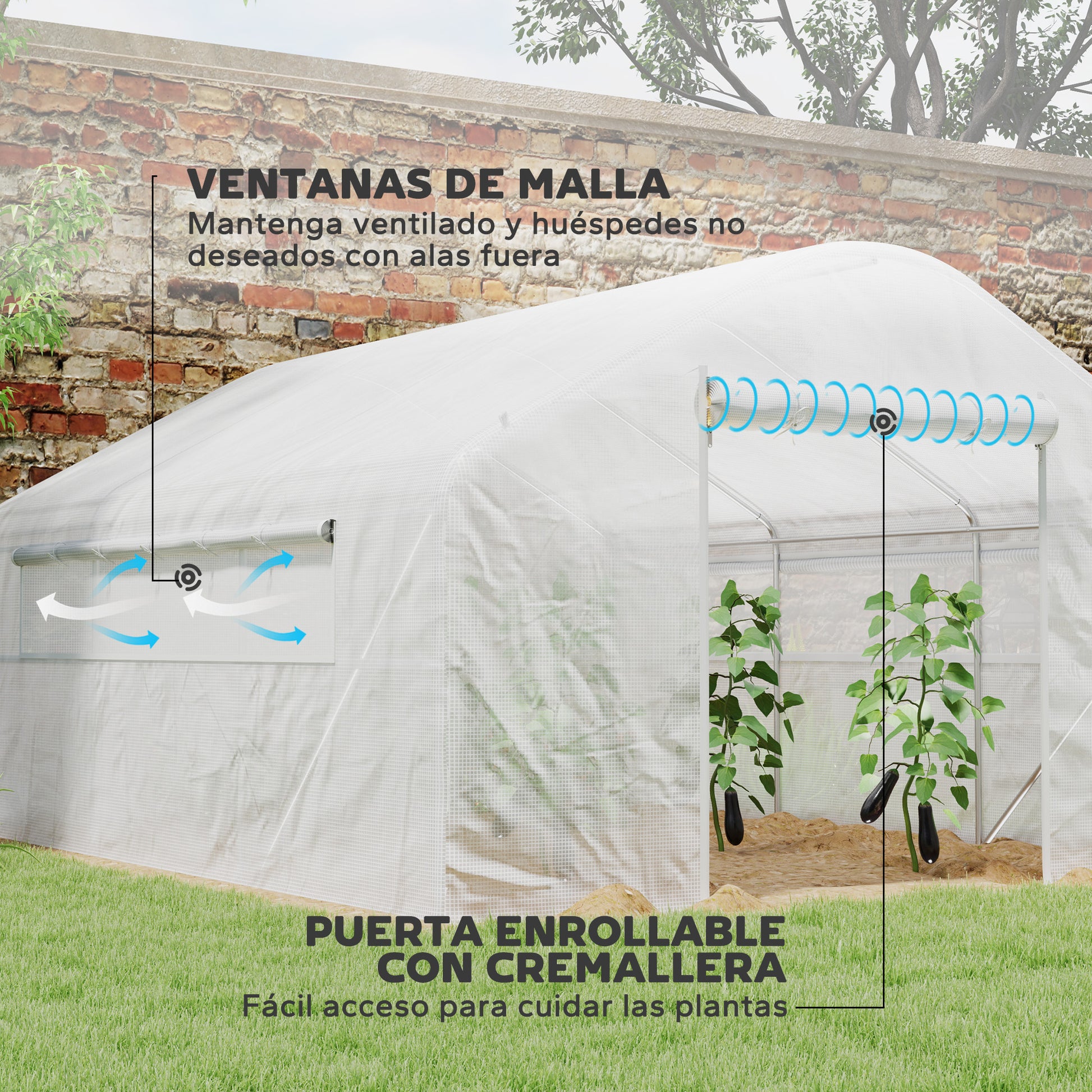 Outsunny Zunanja Rastlinjak 4x3x2 m Tunnelski Rastlinjak z 2 UV-Odpornimi PE Pokrovnimi Okni in 1 Zasnovo Vrata z Zadrgo za Vrtno Patio Belo
