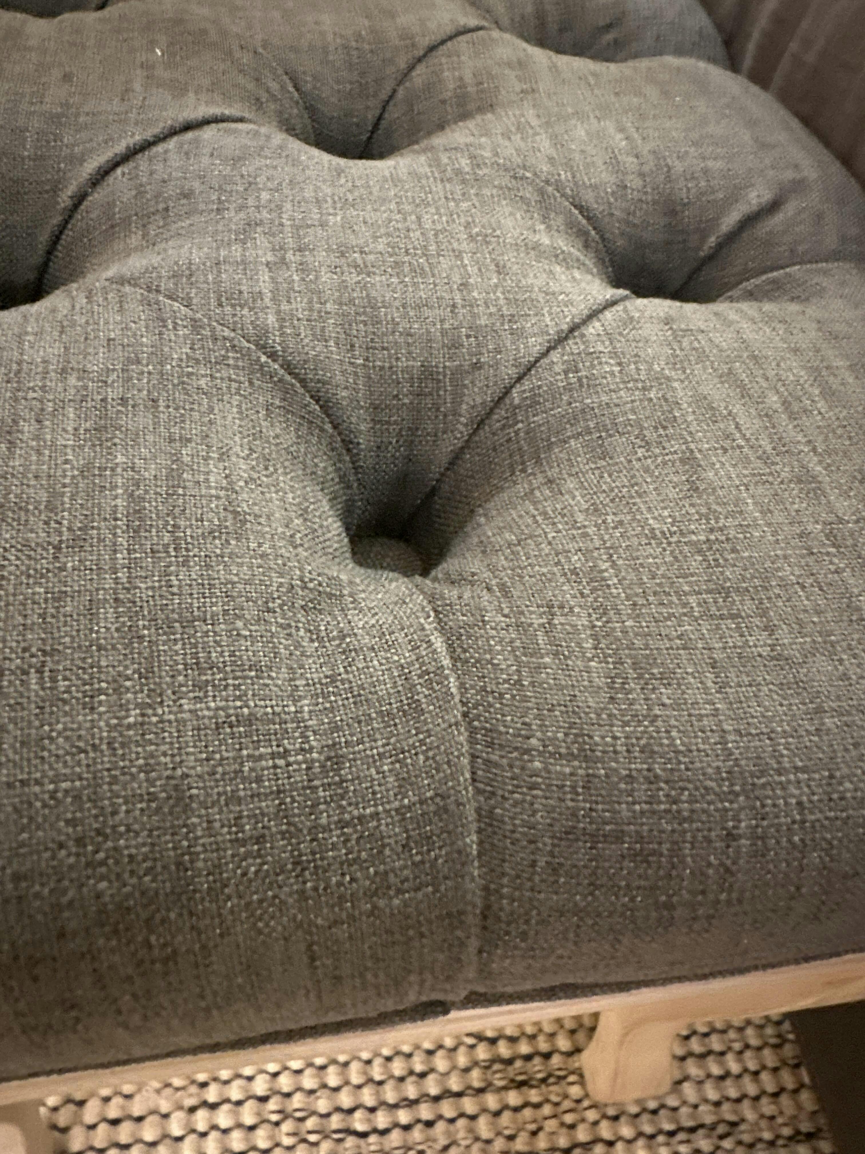 Button-Tufted Bench Classic Chic Style 110 cm End of Bed Linen Upholstered Rubber Wood Legs Gray