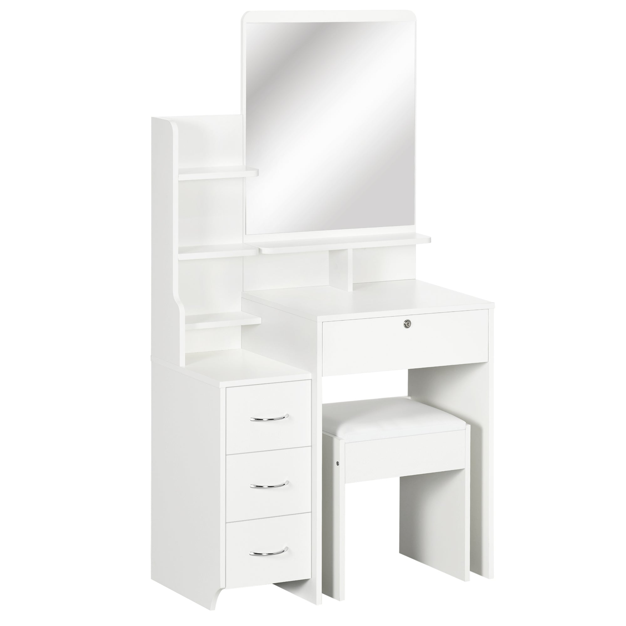 HOMCOM Sminkbord med Pall och Spegel, Sminkbord med 4 Lådor, 4 Förvaringsfack, Modern Stil, 80x38x143 cm Vit