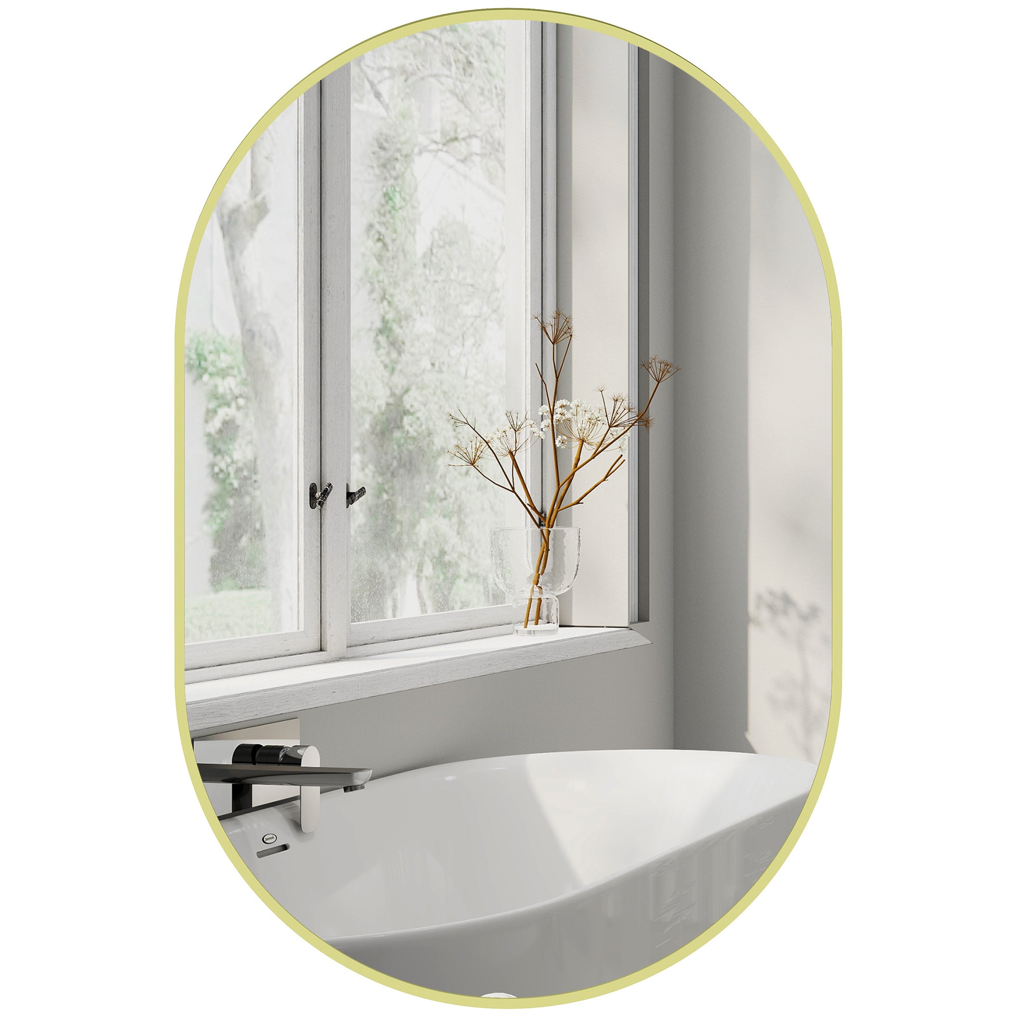 HOMCOM Oval Spegel för Badrum 60x90 cm med Aluminiumram – Dekorativ Väggspegel Horisontell eller Vertikal för Vardagsrum, Entré, Hall Guld