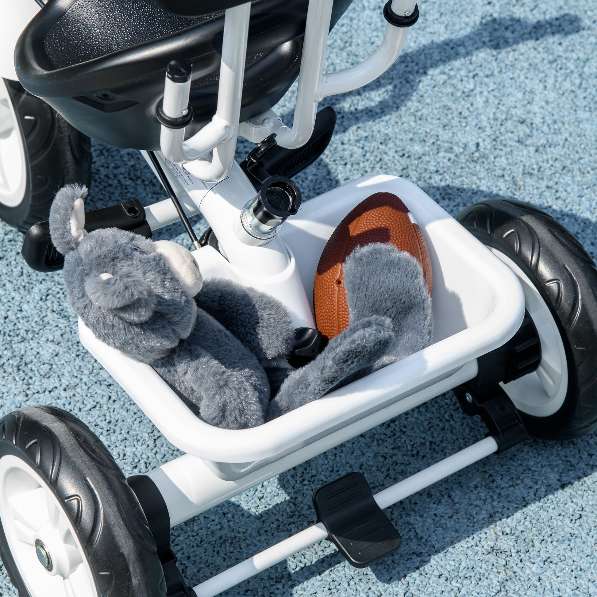 HOMCOM 6-i-1 Trike med Skjuthandtag från 9 Månader upp till 25 kg, Barntrike med Avtagbart Soltak, Säkerhetsbälte, Muggshållare, Korg, Stödhjul för Barn 1-5 År, Vit
