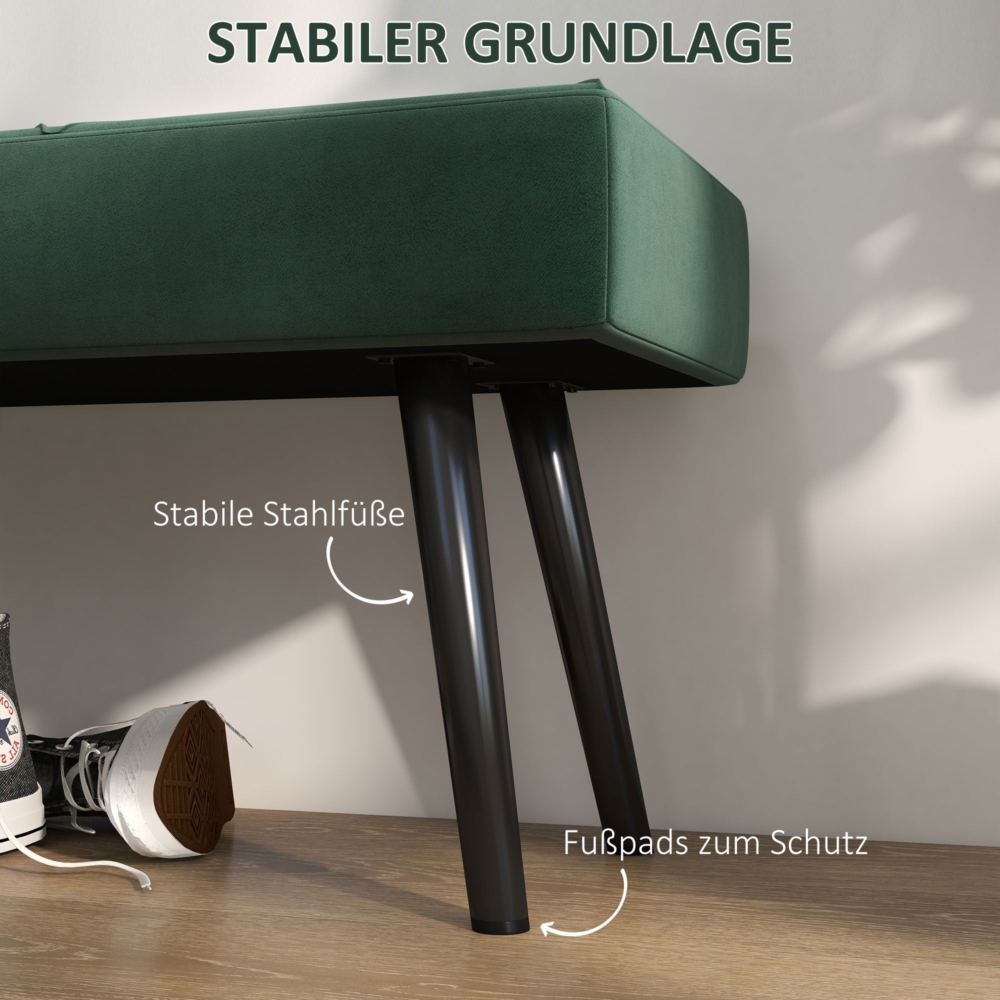 HOMCOM Klädd Bänk i Sammetstyg, Sängbänk med X-Mönster, Stålben, Skoställ för Sovrum, Vardagsrum, Hall, 100 x 36 x 45 cm, Grön