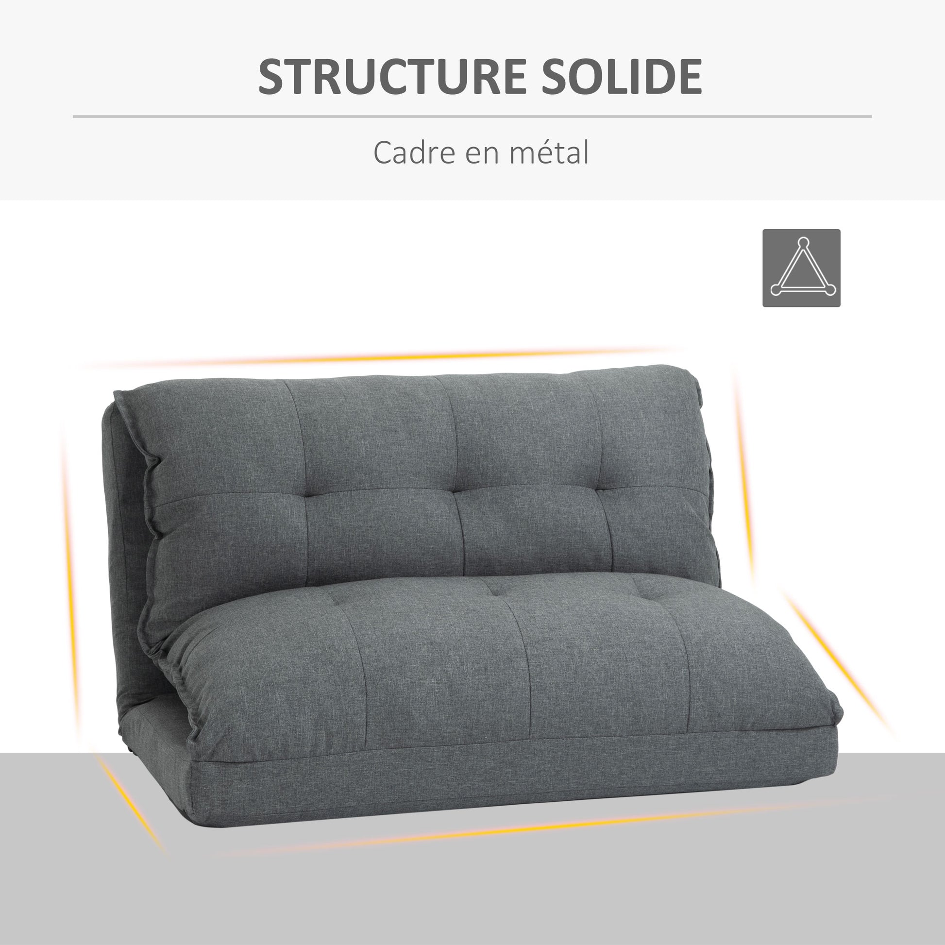 HOMCOM Lazy Floor Armchair Padded Convertible Armchair - Fällbar Stol för Vardagsrum - Reservmadrass - 13 lägen Justerbart Ryggstöd - Grå Linne