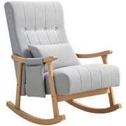 HOMCOM Sittgunga med Ryggstöd, Lumbarsupport och Trärockar, Recliner med Linneutseende – Mjuk Sittgunga för Vardagsrum och Sovrum - Grå