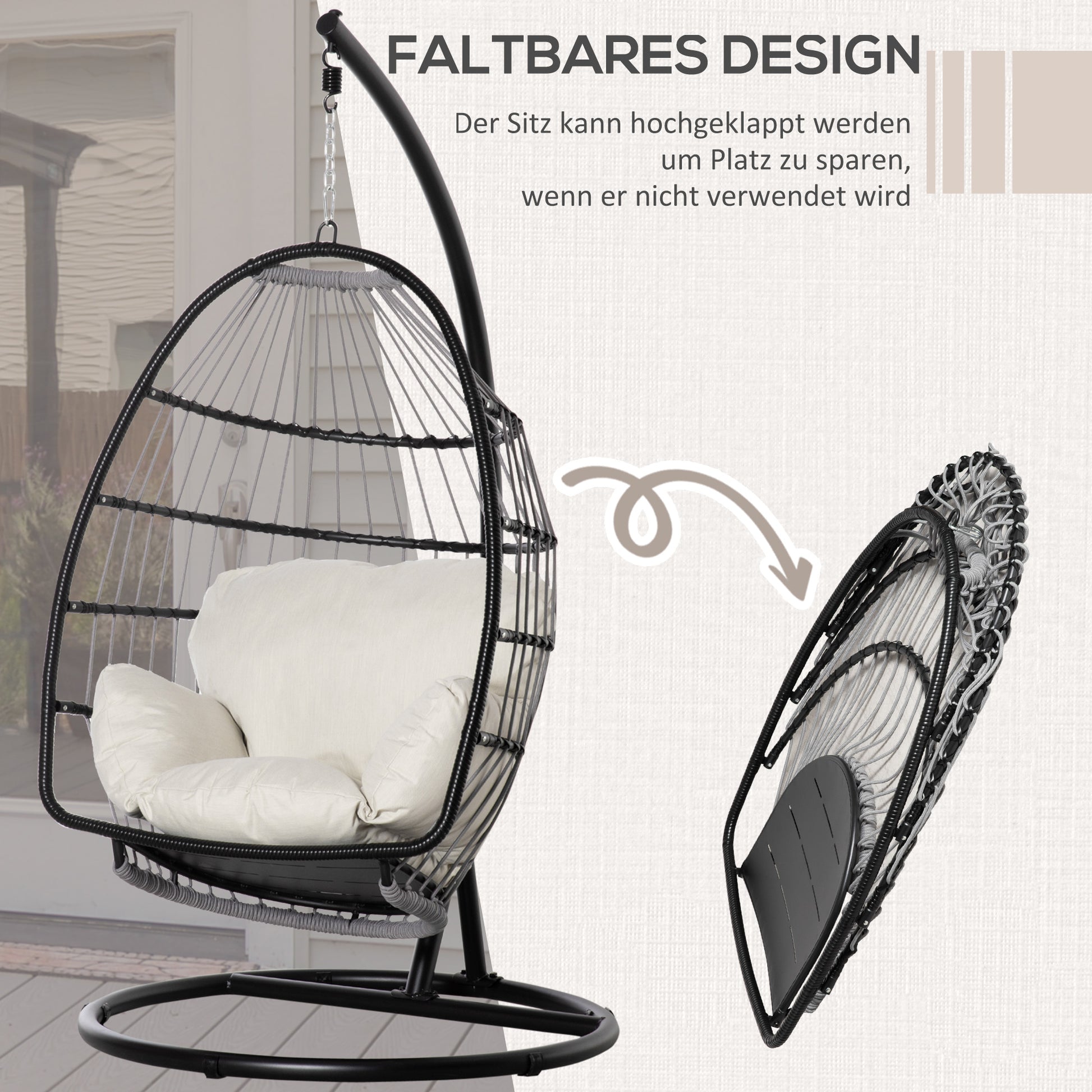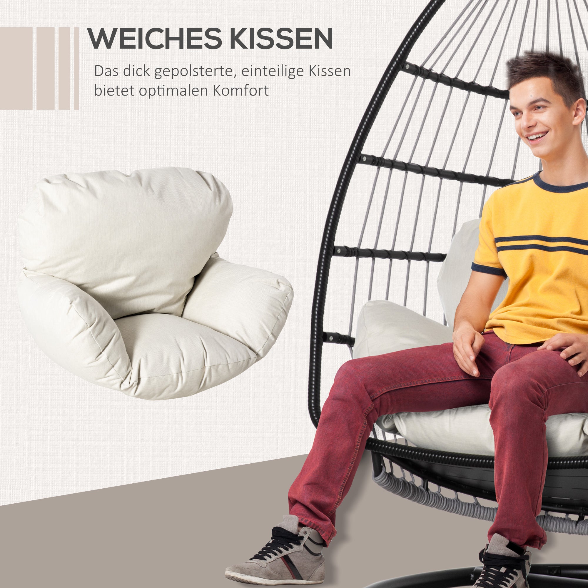 Outsunny Hängstol med Stativ och Kudde - Fällbart Metall Hängande Korg Svart+Krämvit 101 x 101 x 188 cm