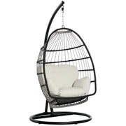 - - FÄLLBAR DESIGN: Denna hängstol med stativ har en fällbar sittkorg som kan kollapsas och förvaras kompakt när den inte används.