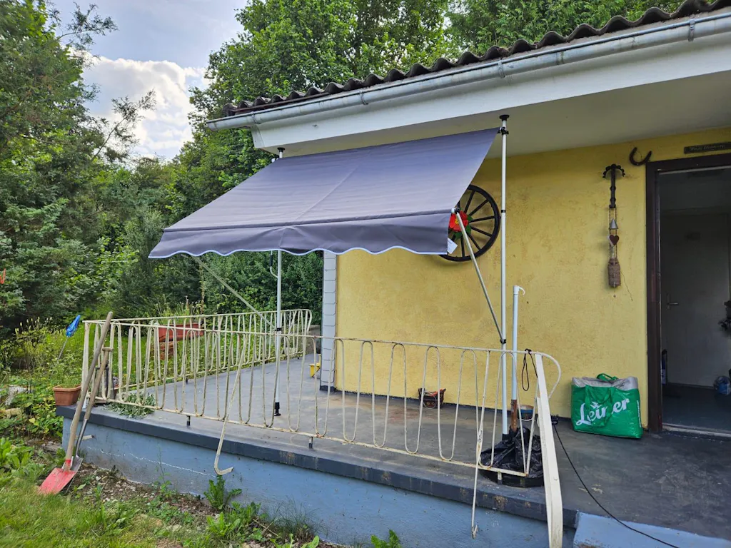 - - HÅLLBART MARKISTYG: Polyestertextilen på markisen är särskilt kraftig med 180 g/m². Detta gör den smutsavvisande och väderbeständig.