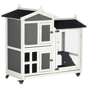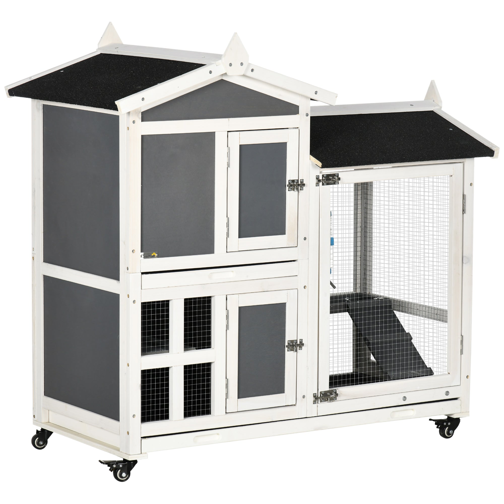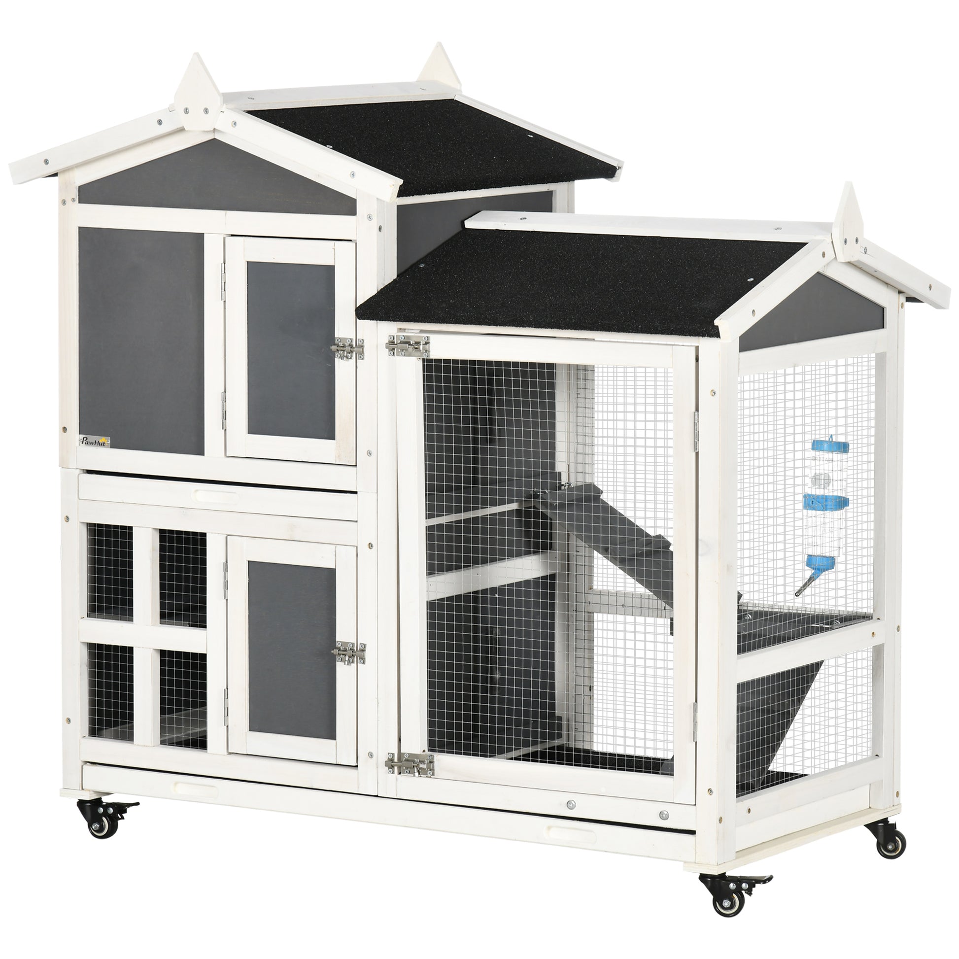 PawHut Utekaninbur för 2 Kaniner i Furu med Bitumen Tak, Avtagbar Plåt och Delat Utrymme, 110x60x104 cm, Grå och Vit