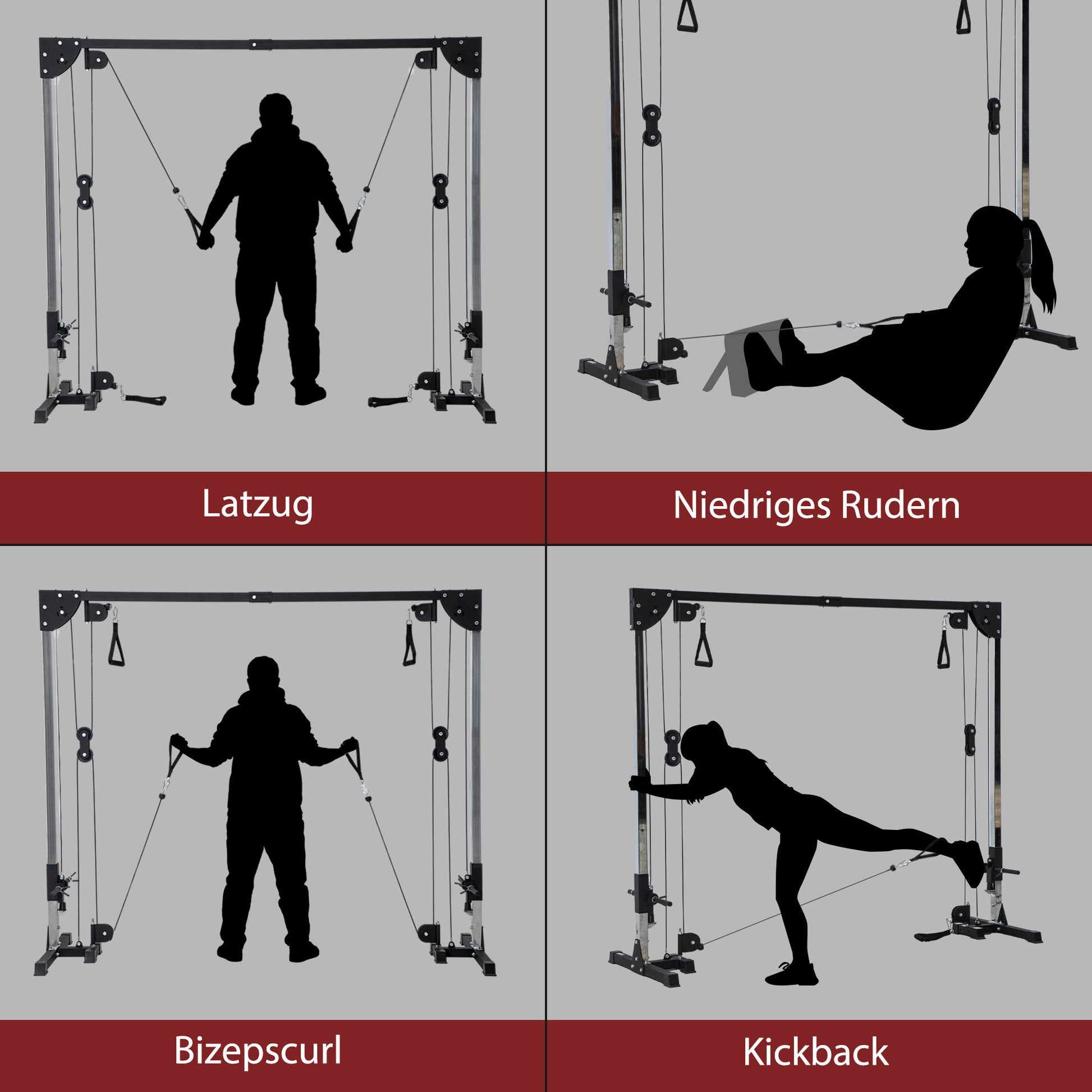 - - Träningsvariation: Utrustad med ett avancerat kabelpulssystem möjliggör detta krafttorn en mängd olika övningar som laterala drag, bicepscurl, kickbacks och rodd för att utöka ditt träningsprogram
