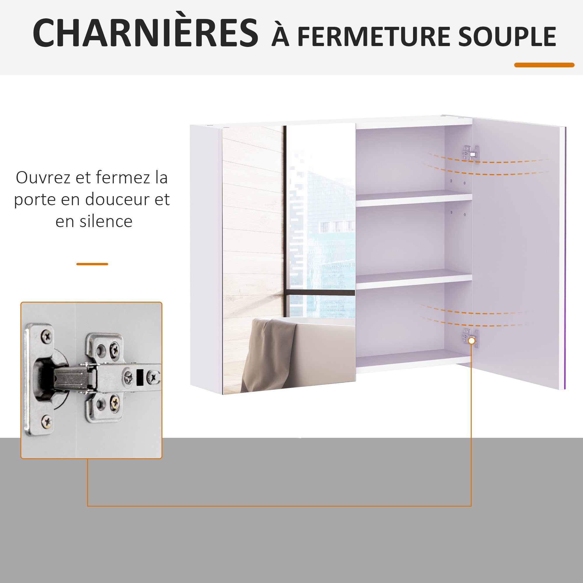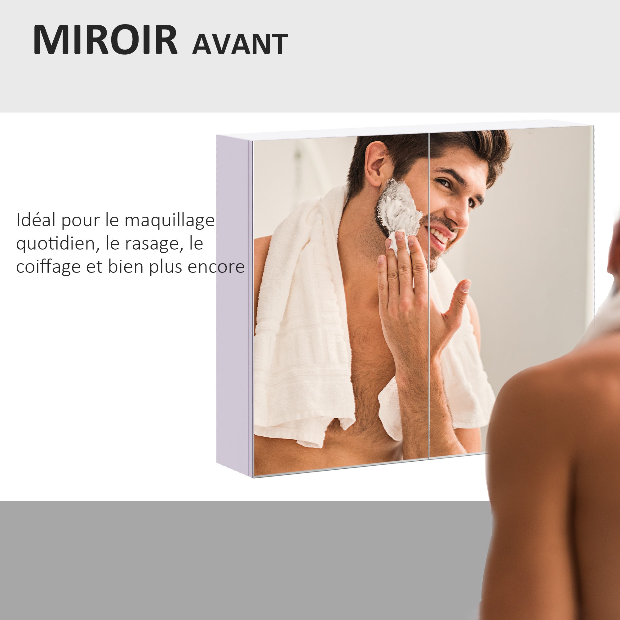 Kleankin Väggmonterad Spegelskåp för Badrum - Spegelskåp - Förvaring för Toalett - 4 Dörrar, Hylla - Vit MDF Glas