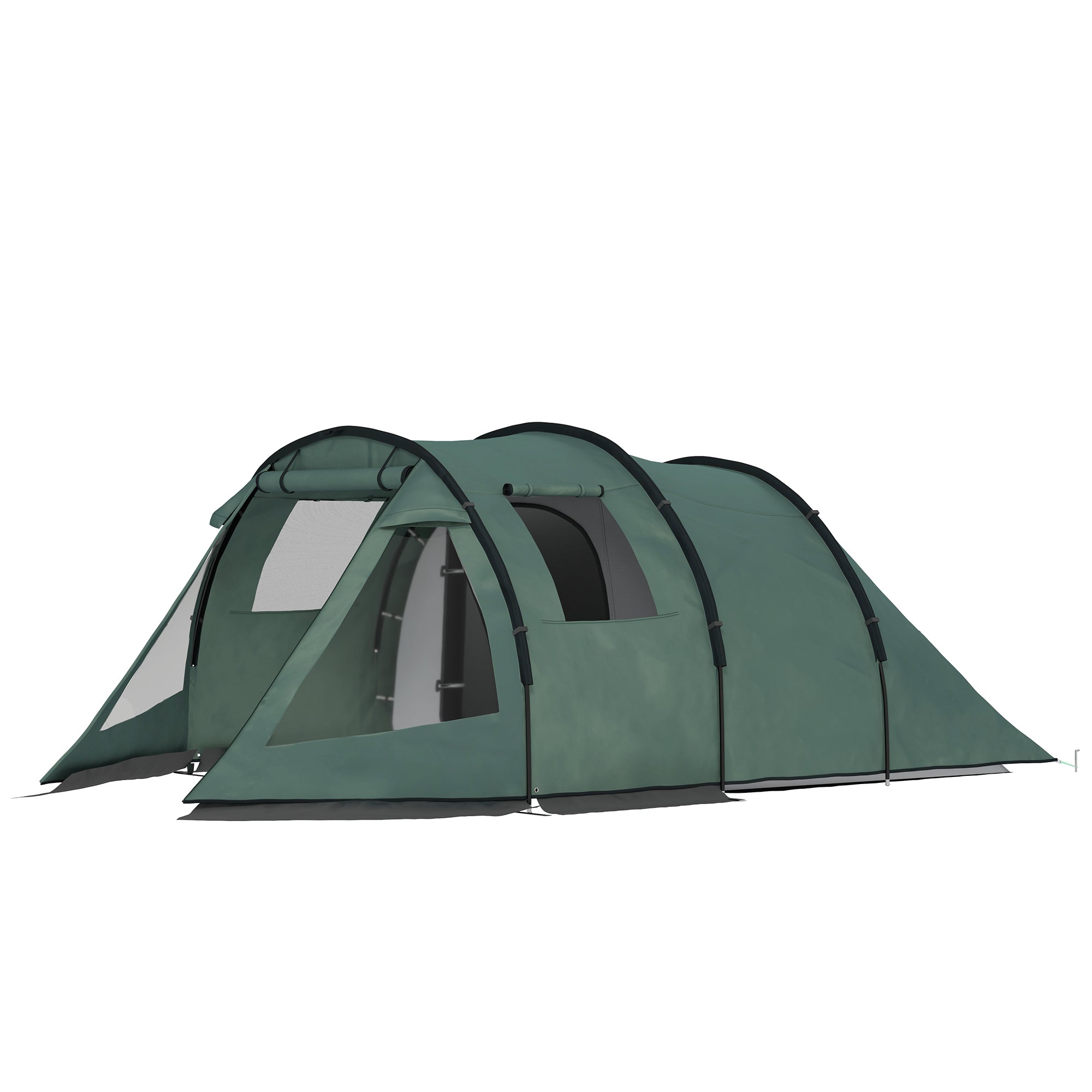 Outsunny Campingtält för 4 Personer - Lätt, Stabilt, Vattentåligt Familjetält med Dörrfönster, Bärväska, Tunneltält med 2000mm Vattenpelare för Camping, Resor, Vandring och Trädgård