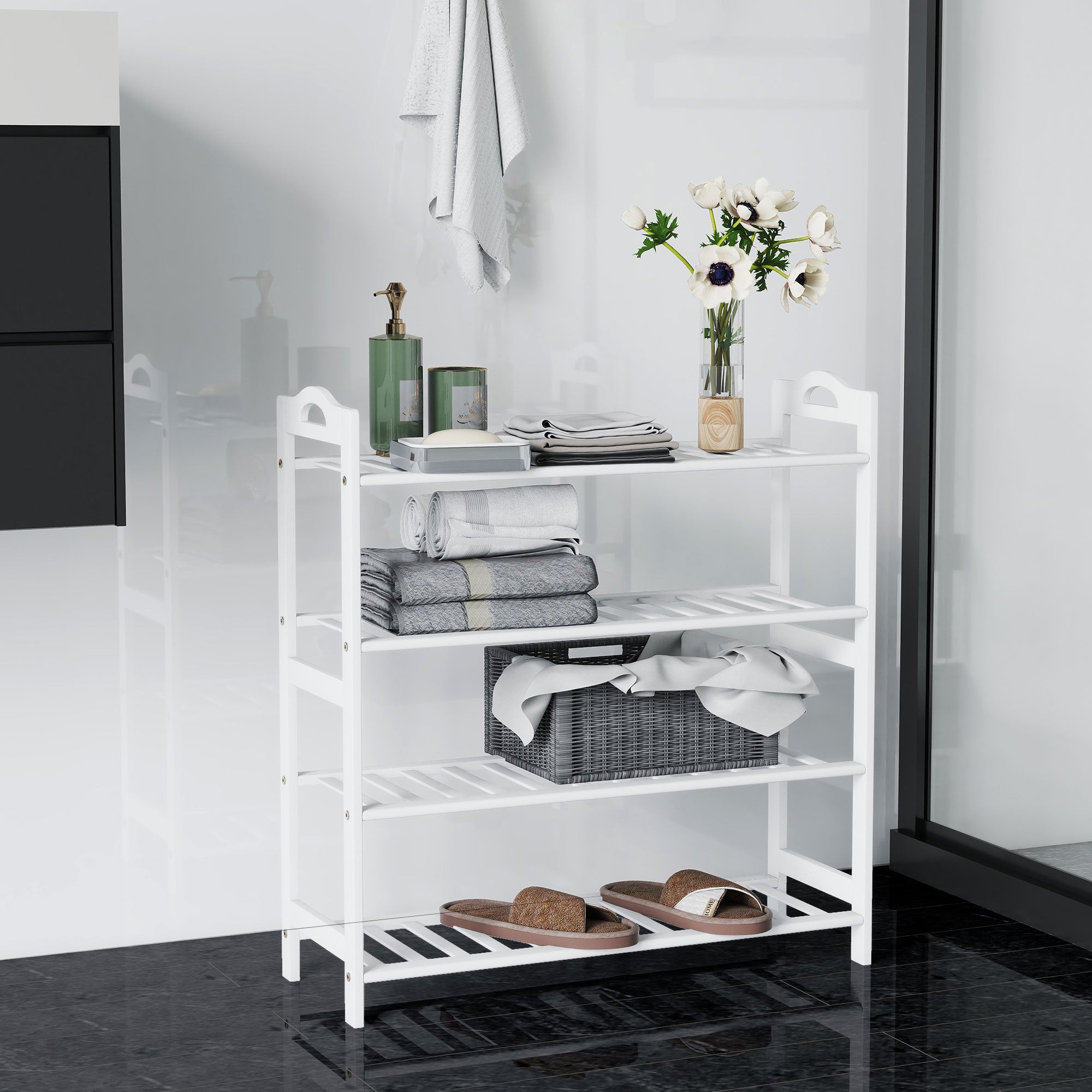 HOMCOM 4-nivå Bamboo Skoställ för 12 Par Skor för Entré Hall Sovrum 67,5x24,7x72 cm Vit