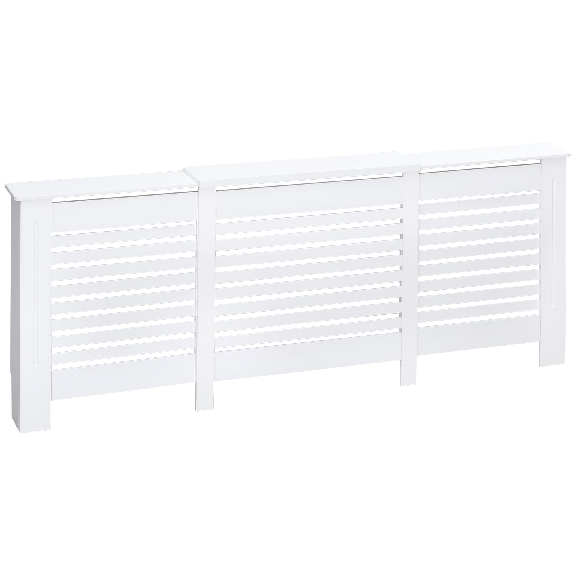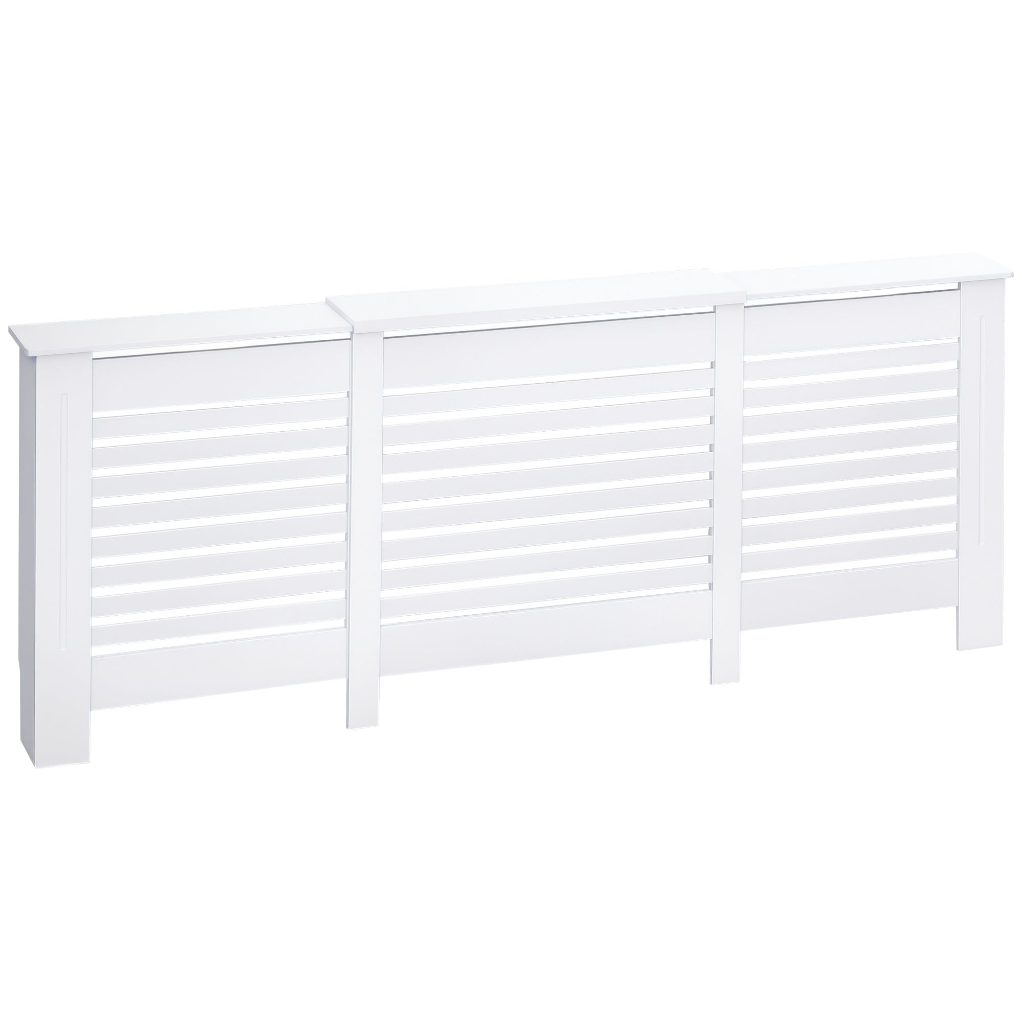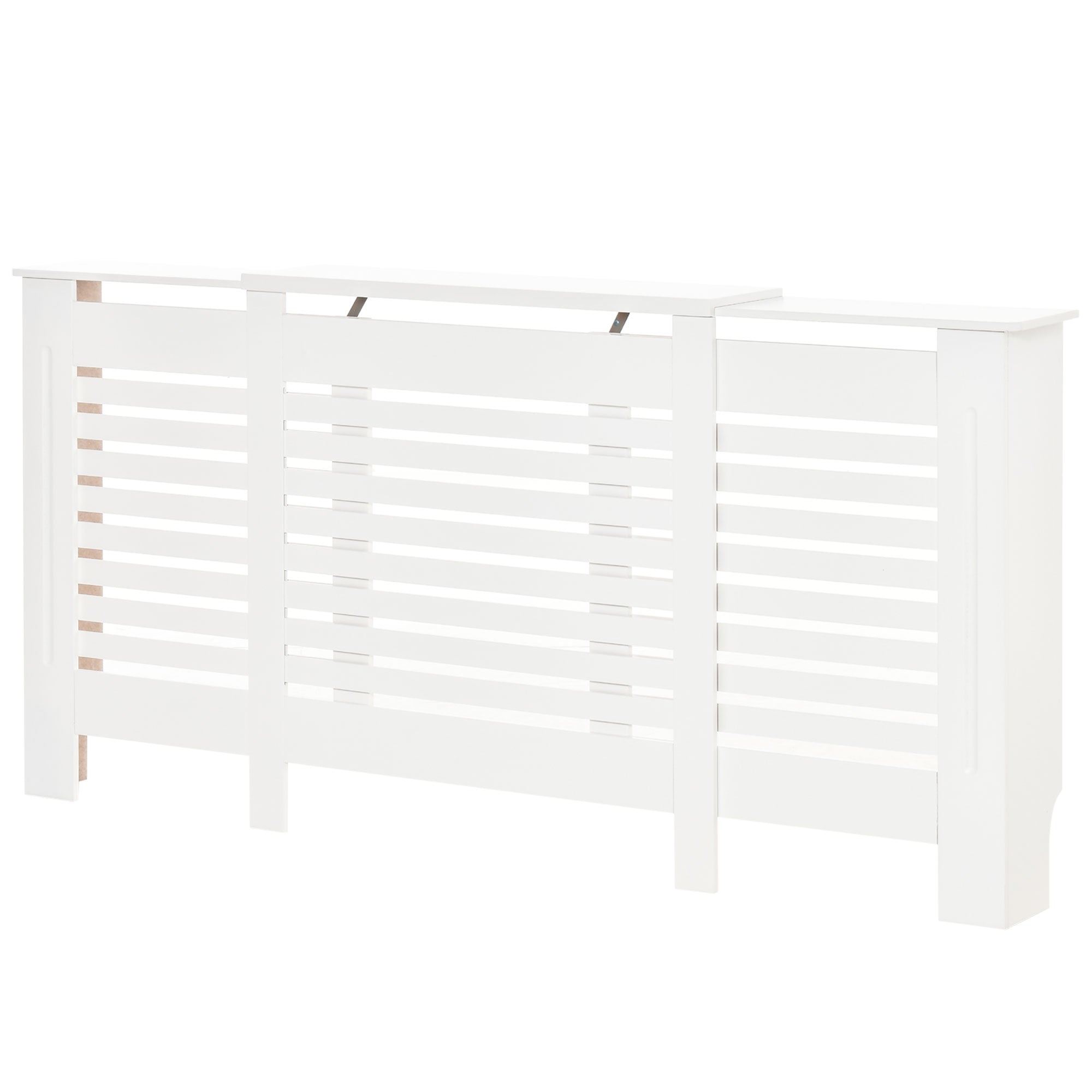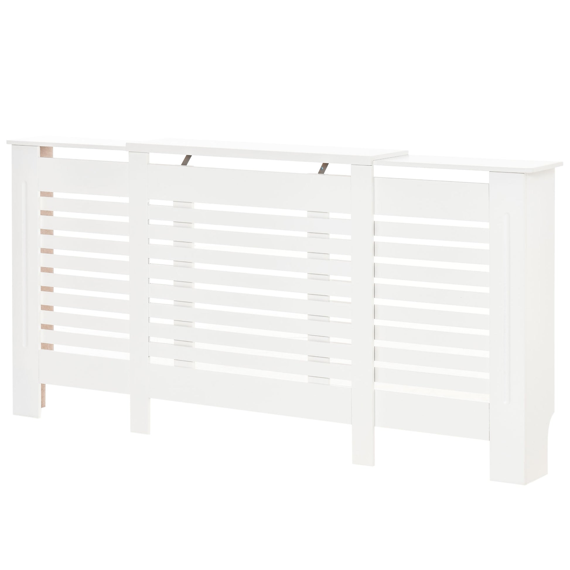 HOMCOM Justerbar Radiatoröverdrag med Överhylla i MDF och Trä, 140-202x19x82.5cm, Vit
